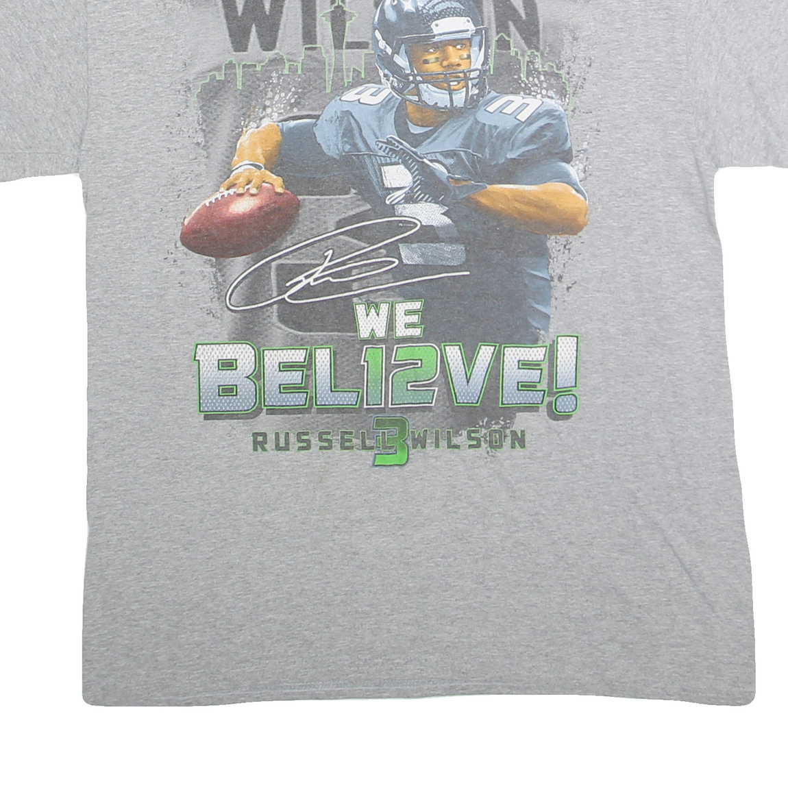GILDEN Mens Grey Russell Wilson Football Graphic T-Shirt M Crew Neck Short