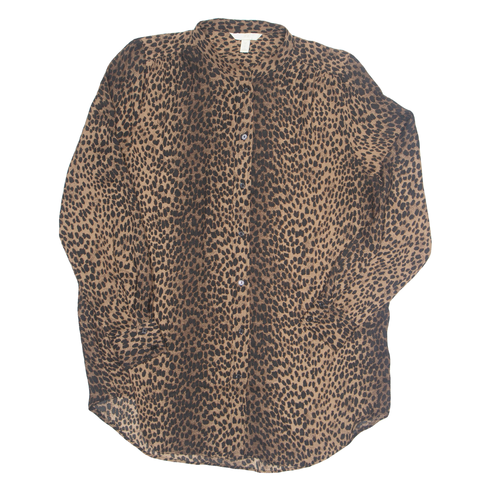 H&M Womens Printed Blouse Brown Long Sleeve Animal Print S