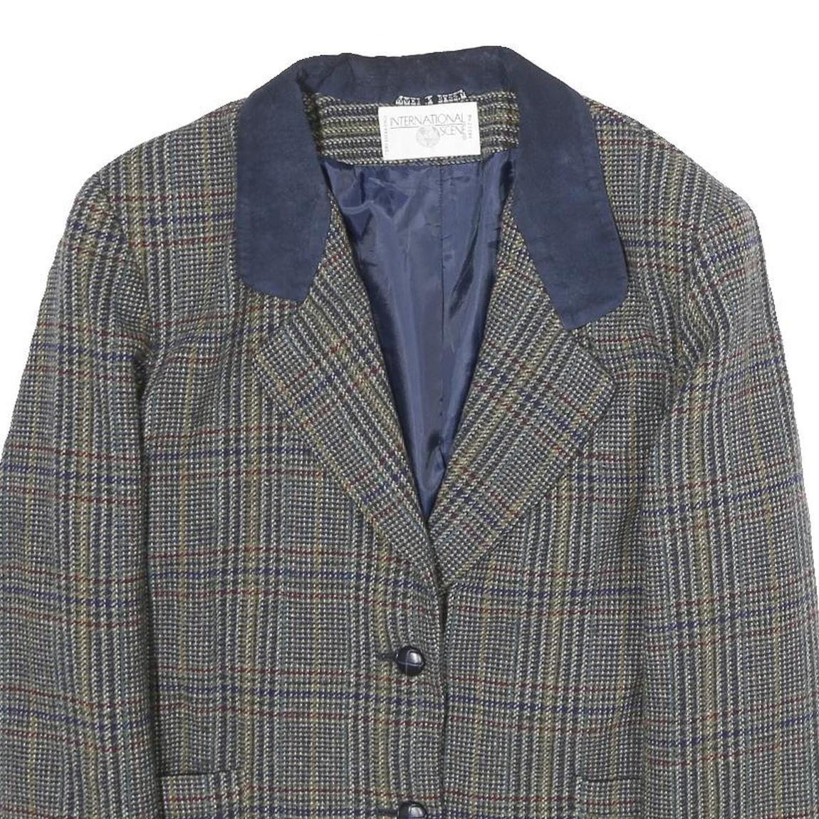 INTERNATIONAL SCENE Womens Blue & Grey Check Button Jacket M Cotton Tailored