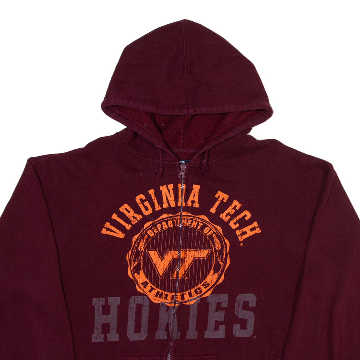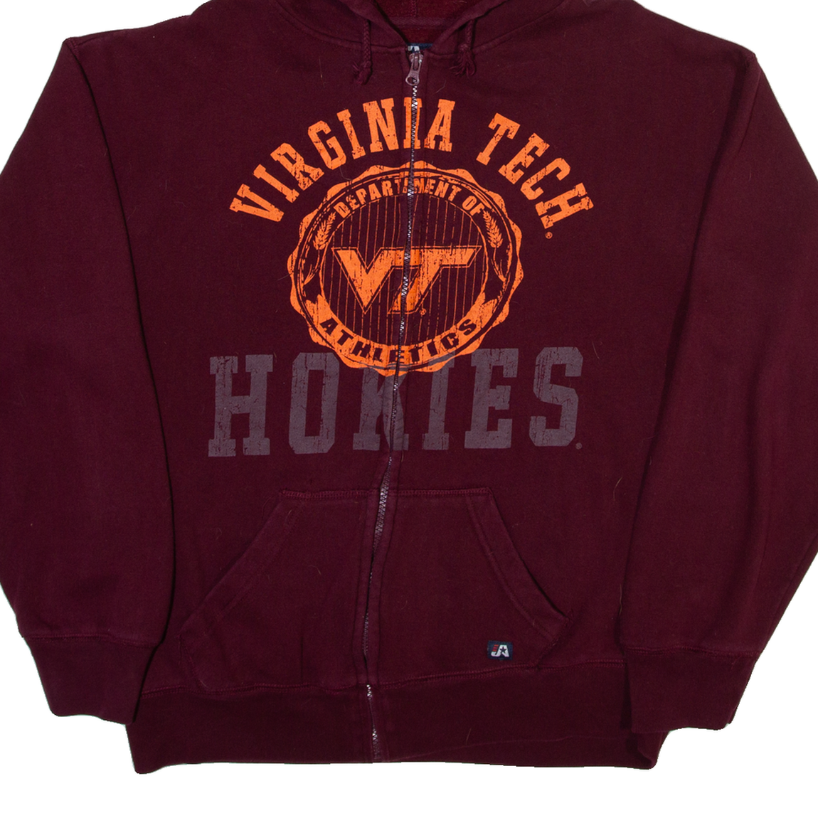 J.American Virginia Tech Mens Maroon Hoodie Full Zip USA M