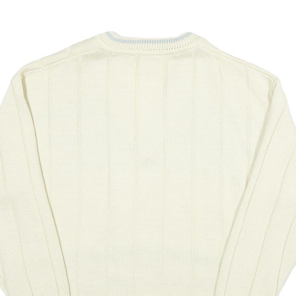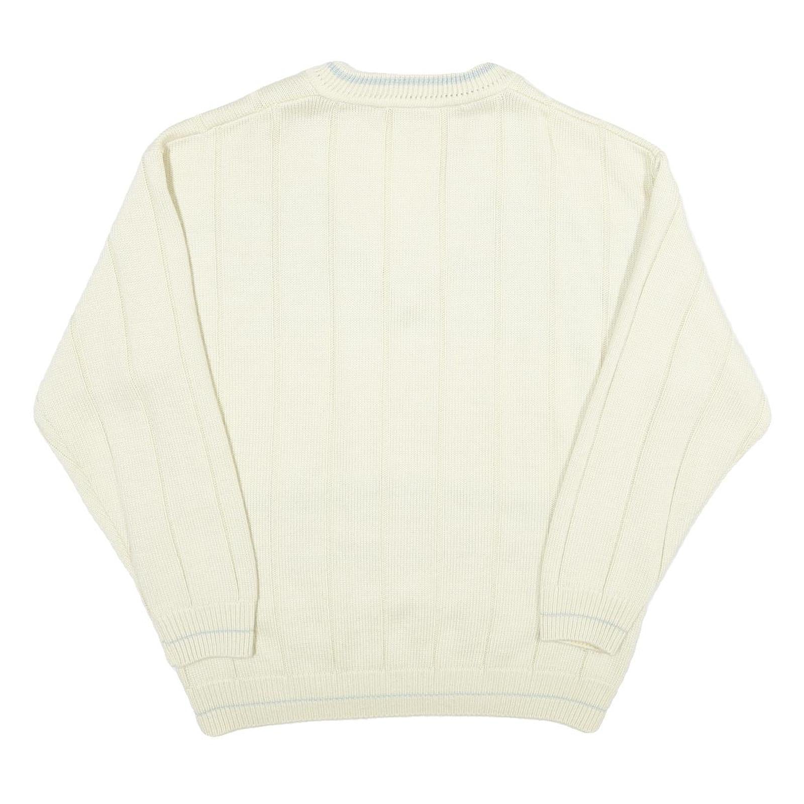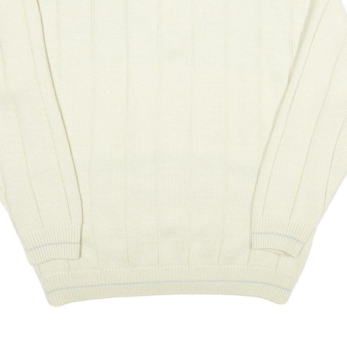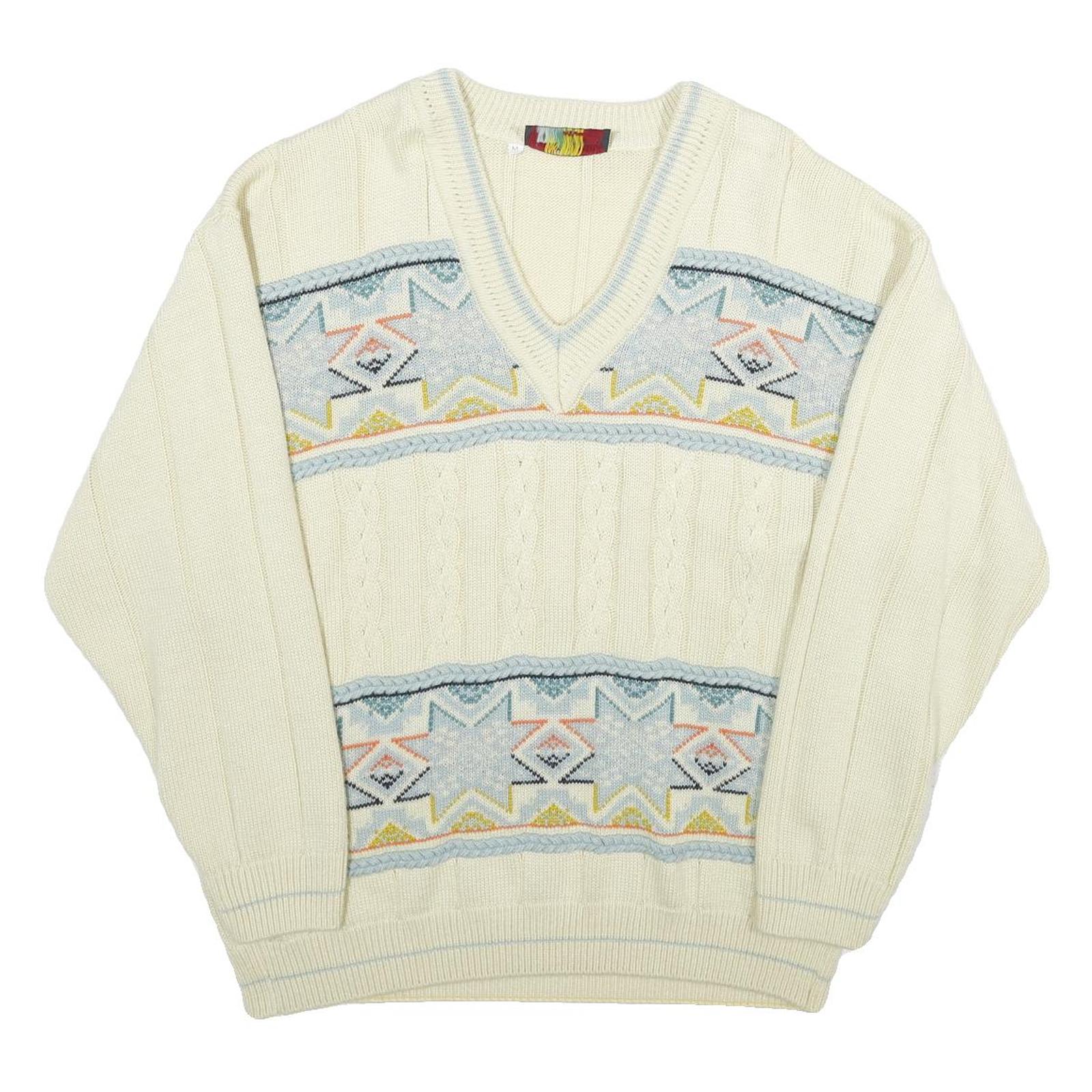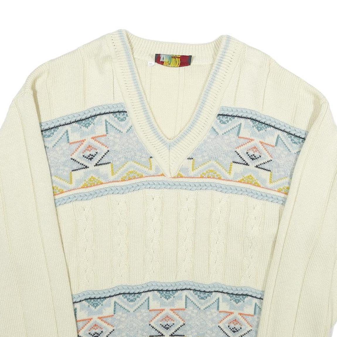 JESMARY Mens Cream Patterned V-Neck Cable Knit Jumper M Wool Warm Classic