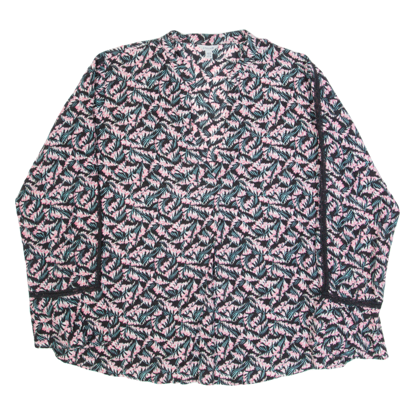 JIGSAW Womens Printed Blouse Black V-Neck Long Sleeve Floral UK 10