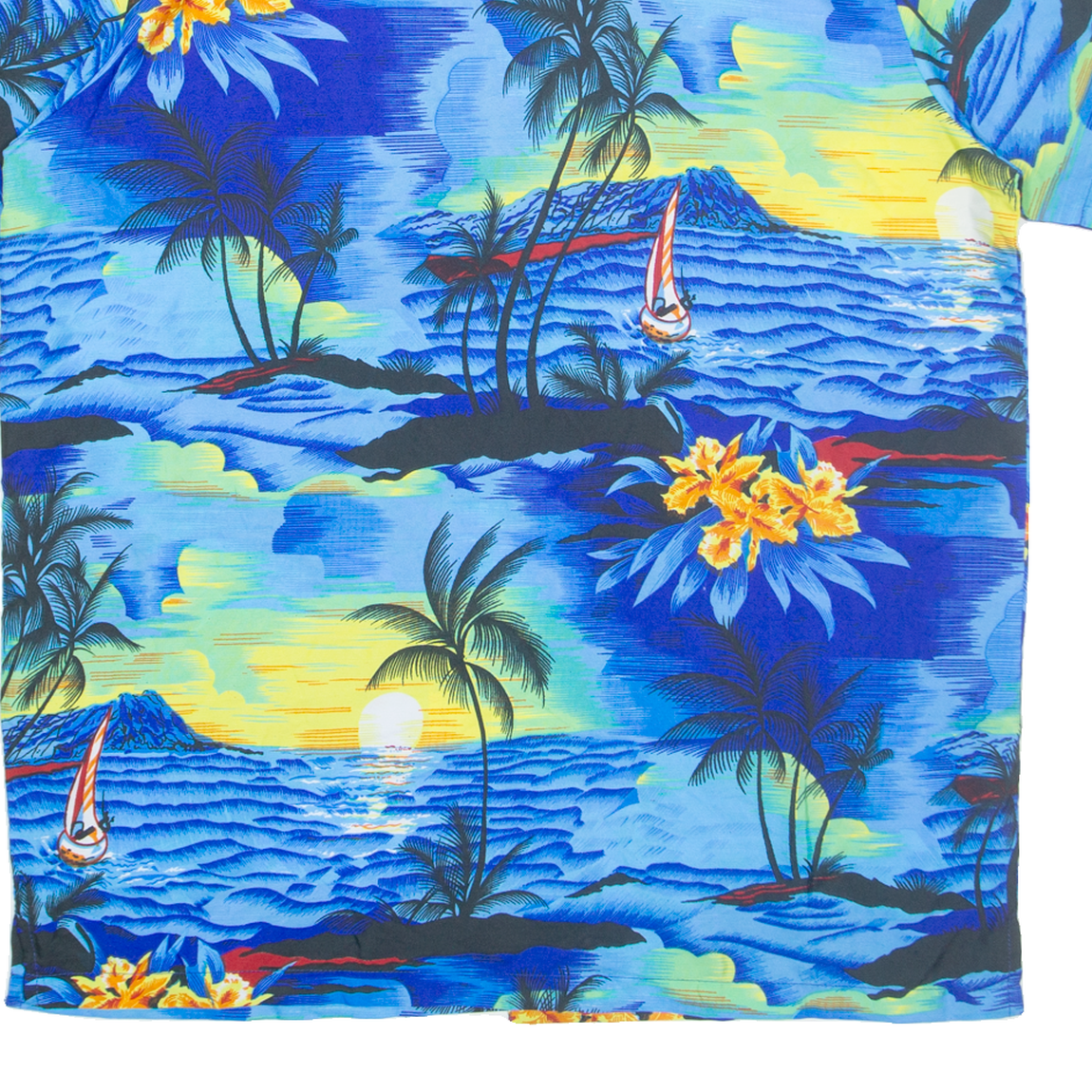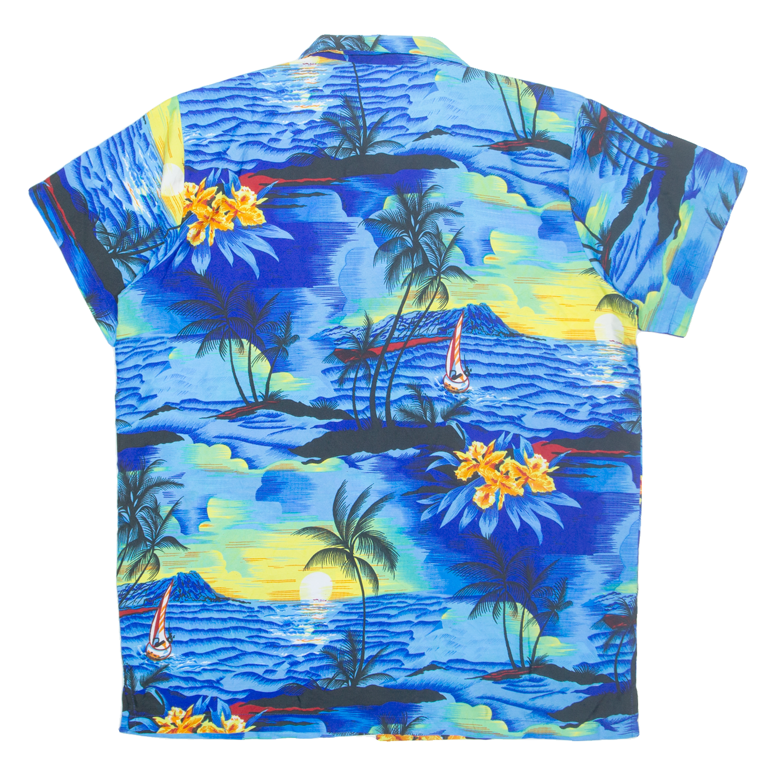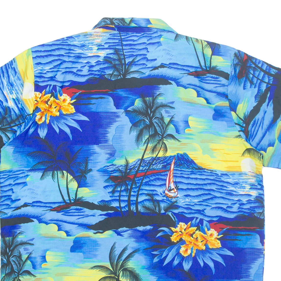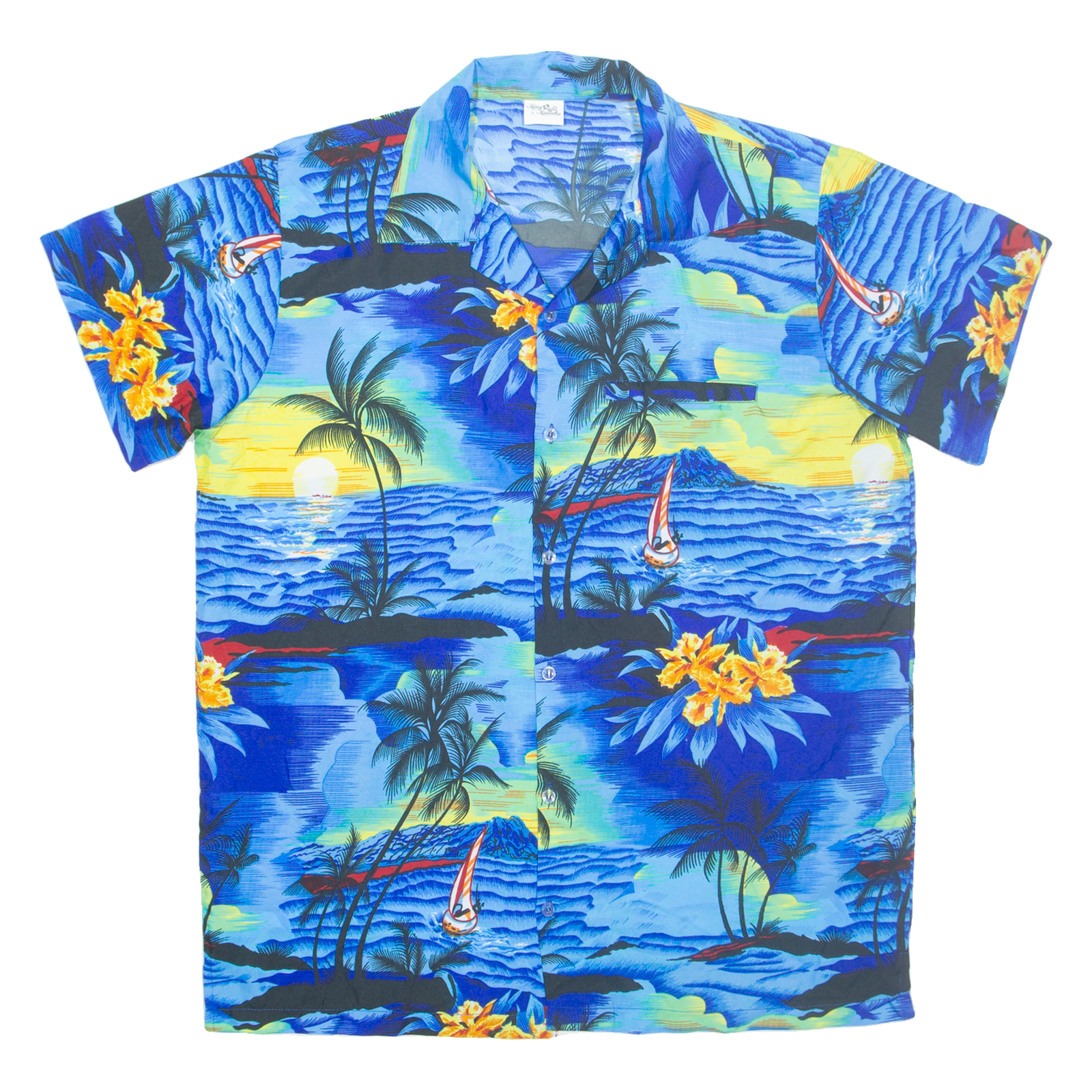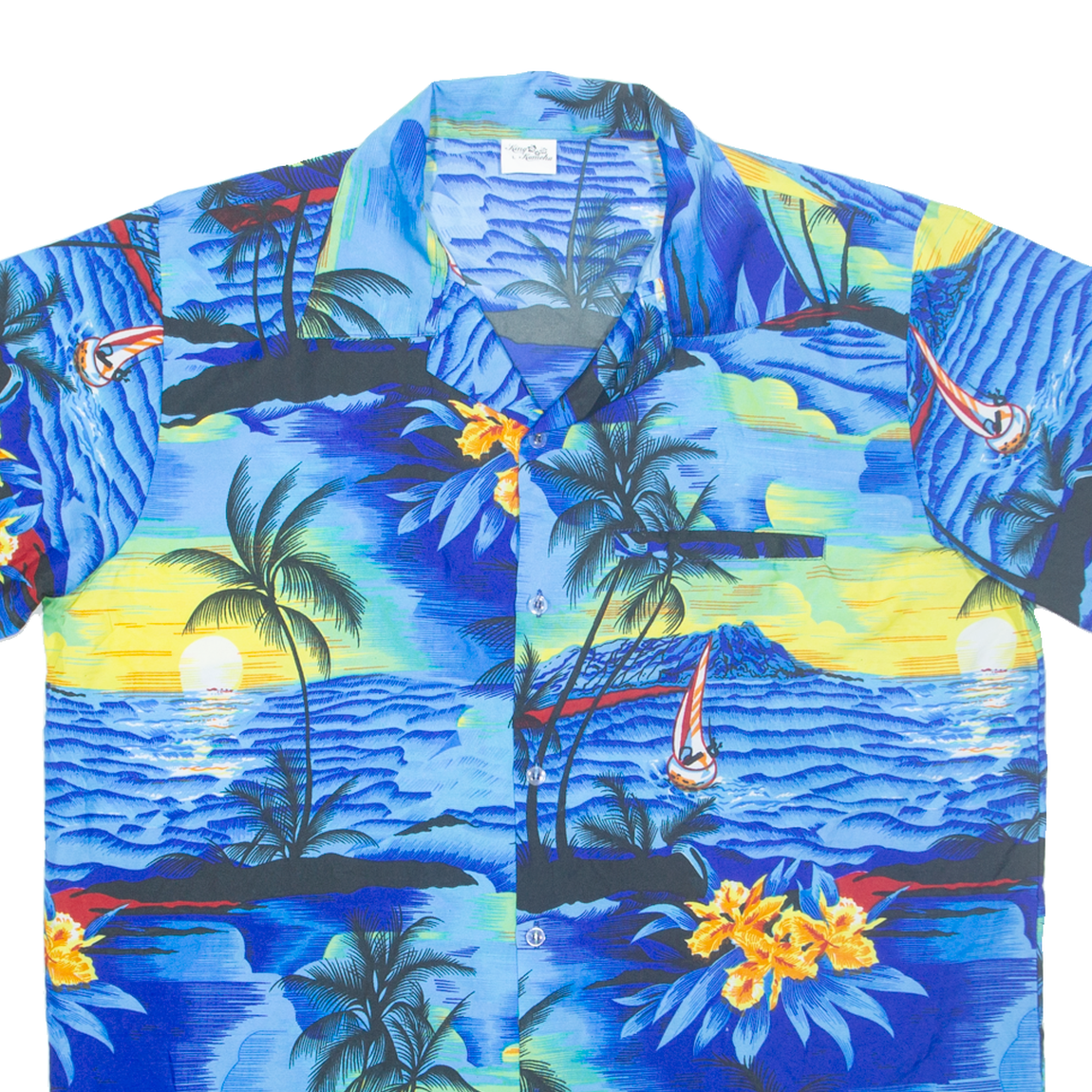 KING KAMEHA Mens Hawaiian Shirt Blue Crazy Pattern L