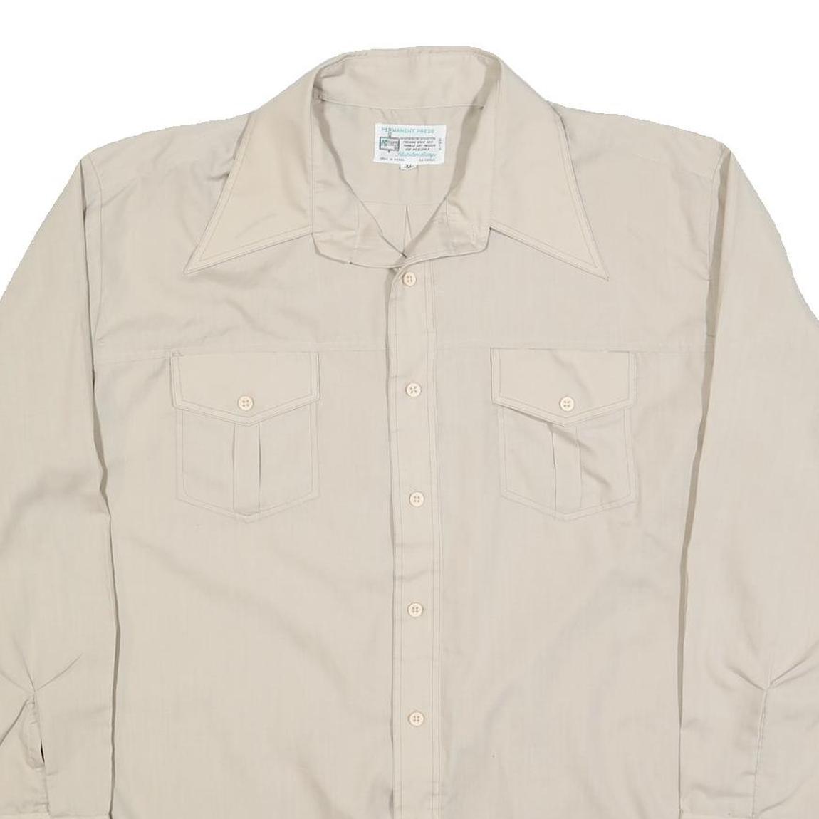 KMART Mens Beige Polyester Blend Shirt XL Long Sleeve Button Front Casual
