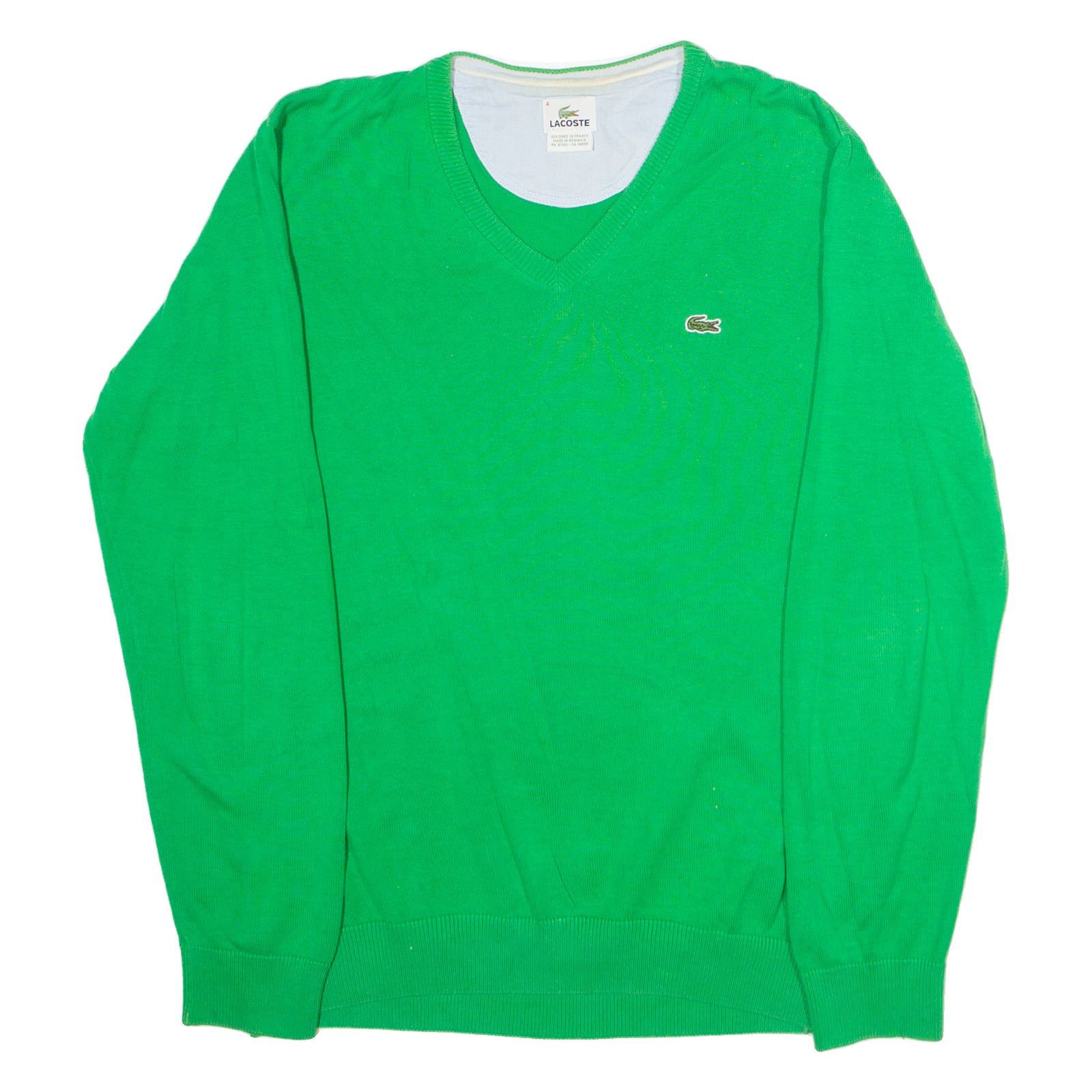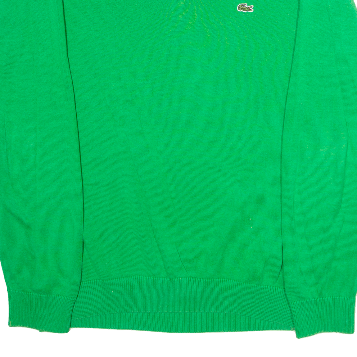 LACOSTE Mens Jumper Green V-Neck Tight Knit M