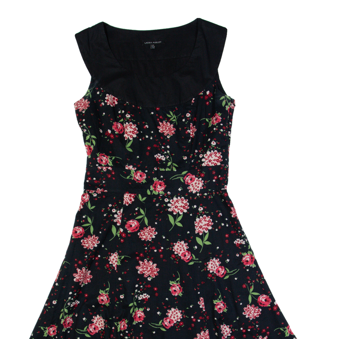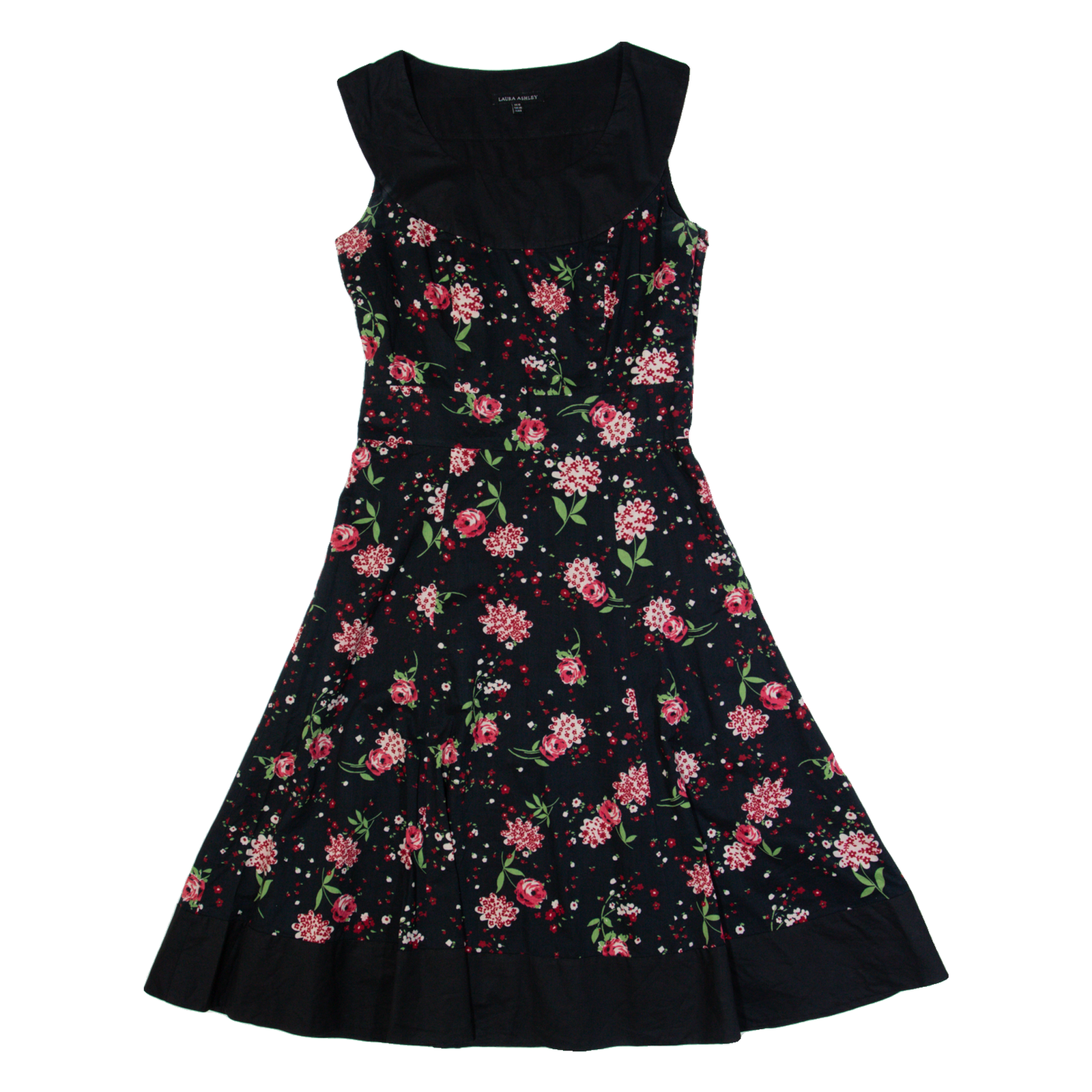 LAURA ASHLEY Womens A-Line Dress Black Floral Sleeveless Midi UK 10