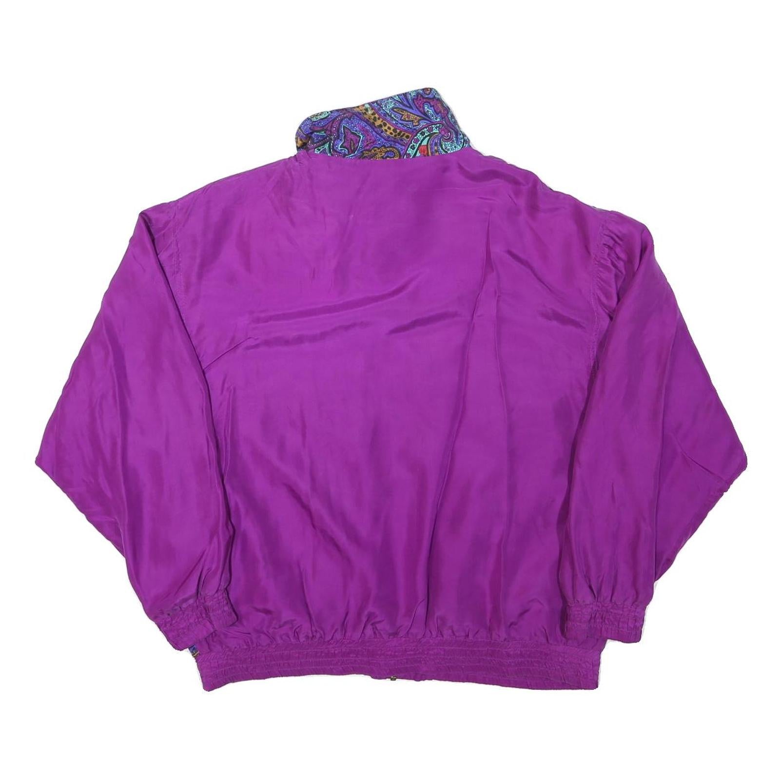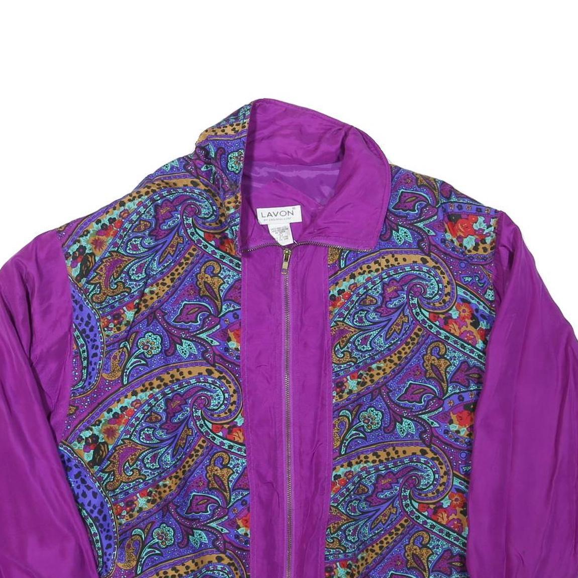 LAVON Womens Purple Paisley Bomber Jacket L Polyester Blend Zip