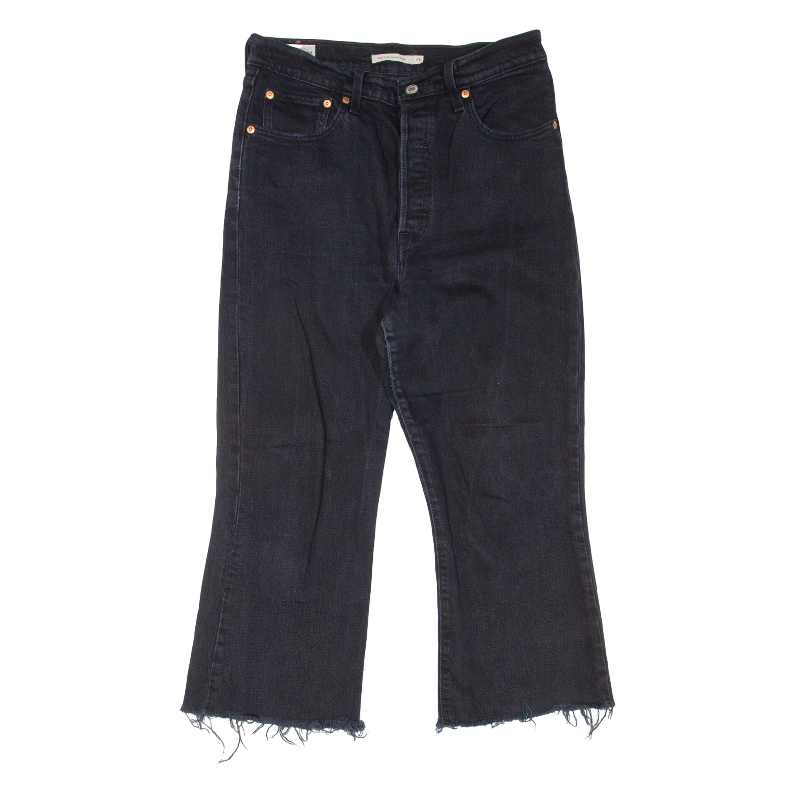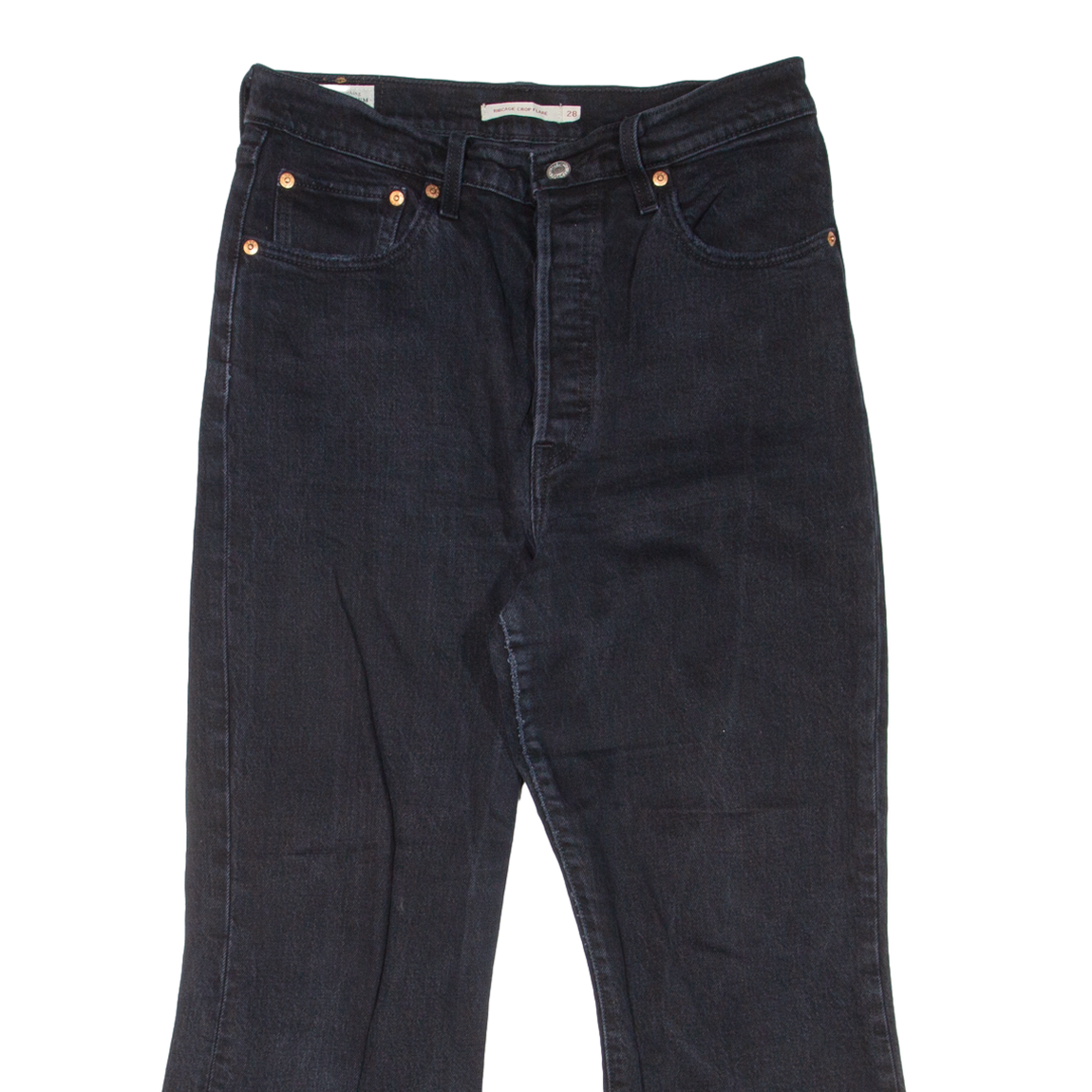 LEVI'S Rib Cage Crop BIG E Womens Jeans Black Regular Flared W28 L22