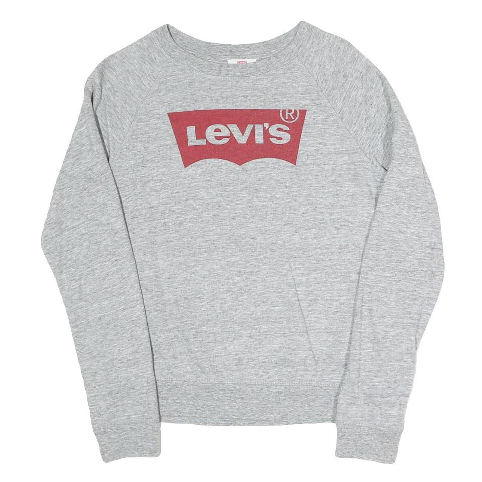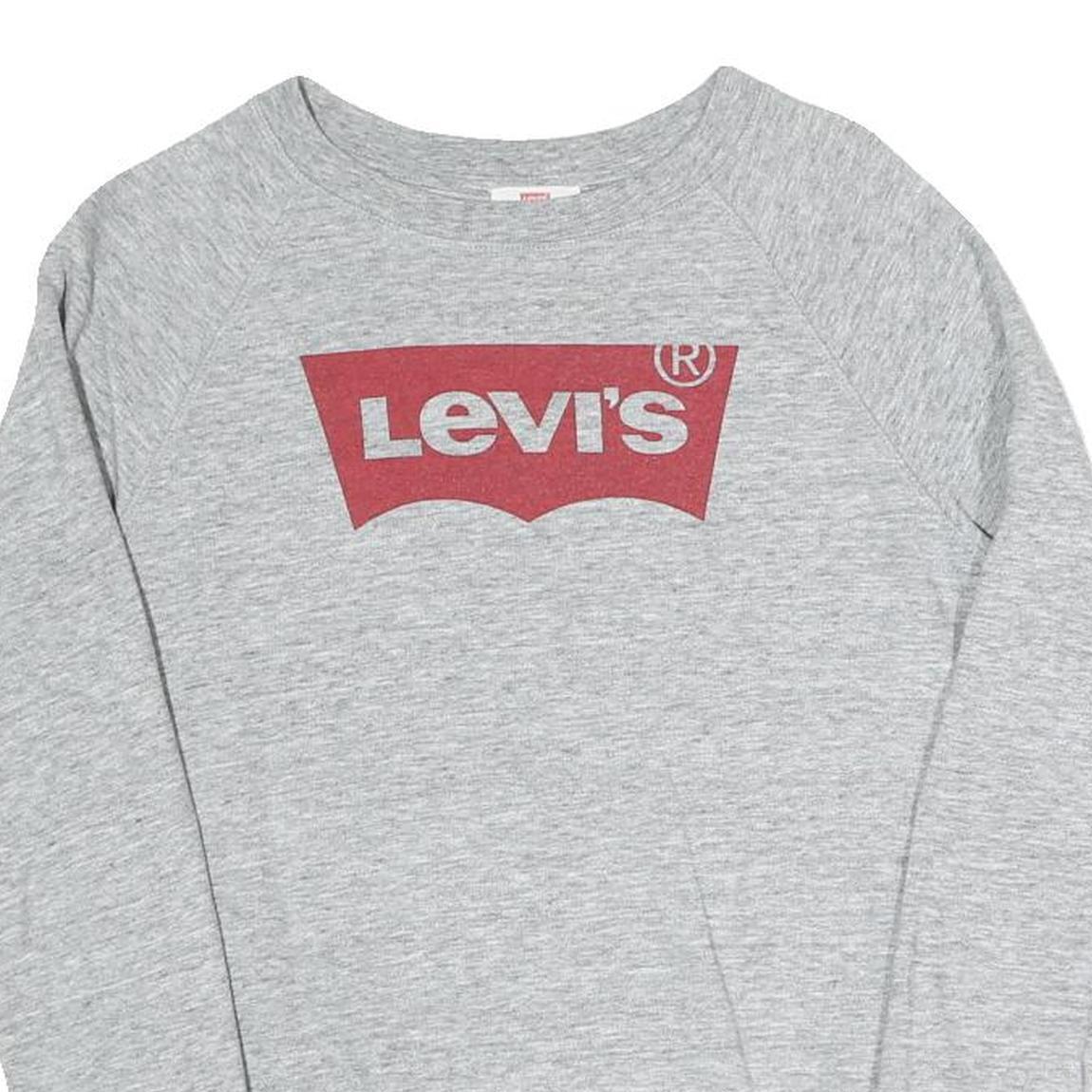 LEVI'S Womens Grey Sweatshirt Crew Neck S Cotton Blend Pullover Logo Print