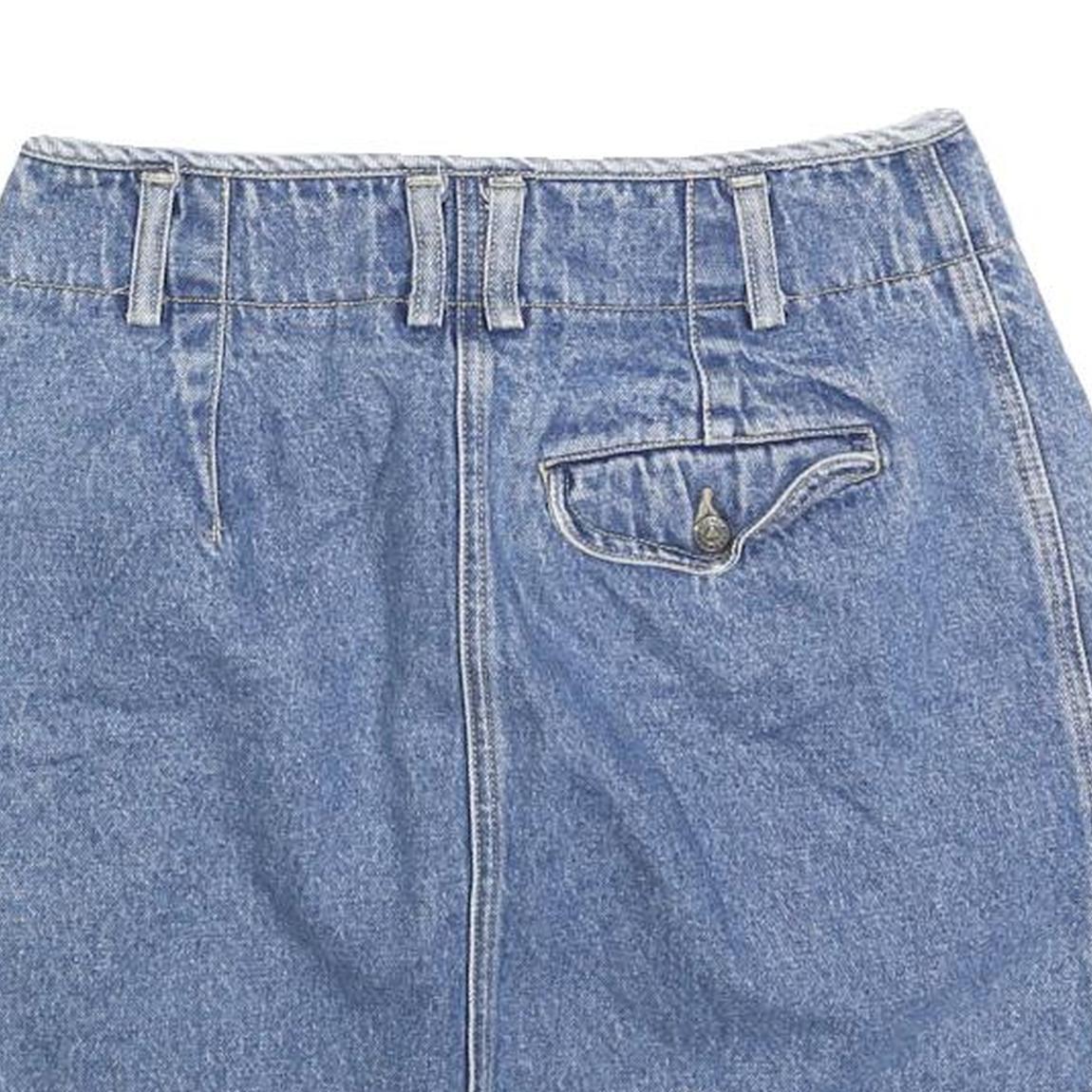 LIZ WEAR Womens Blue Denim Mini Cotton Plain Skirt Size S Button Closure