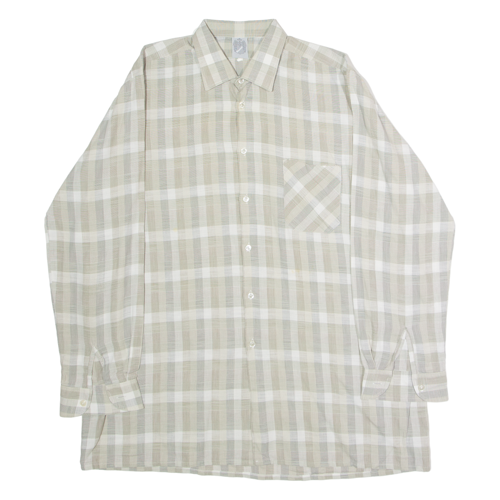 MARSUM Mens Shirt Beige Check Long Sleeve L