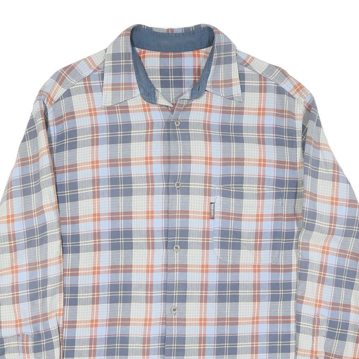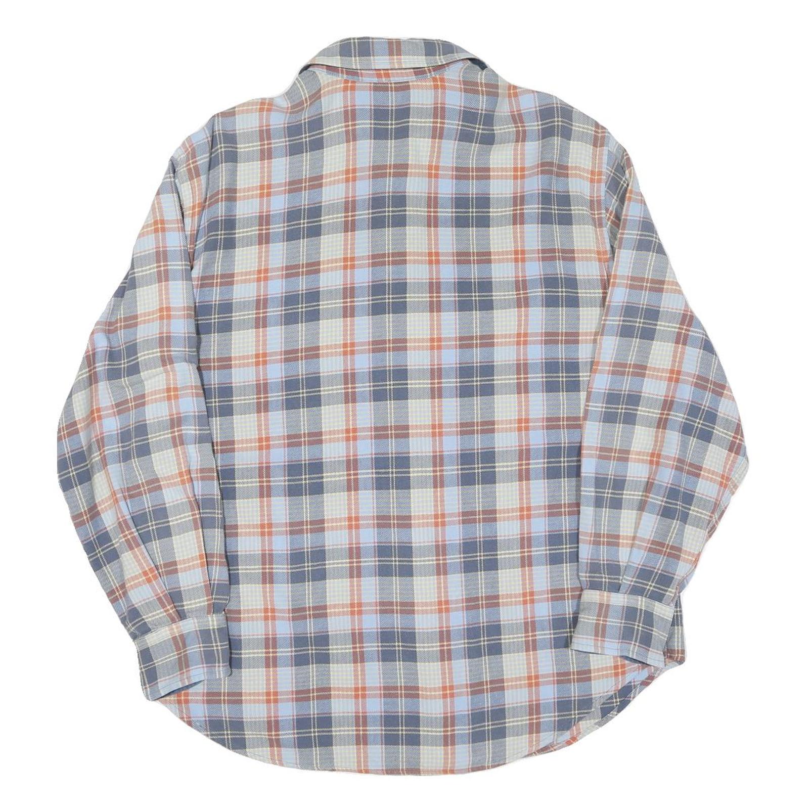 Mens Blue & Orange Check Cotton Shirt M Casual Long Sleeve Button