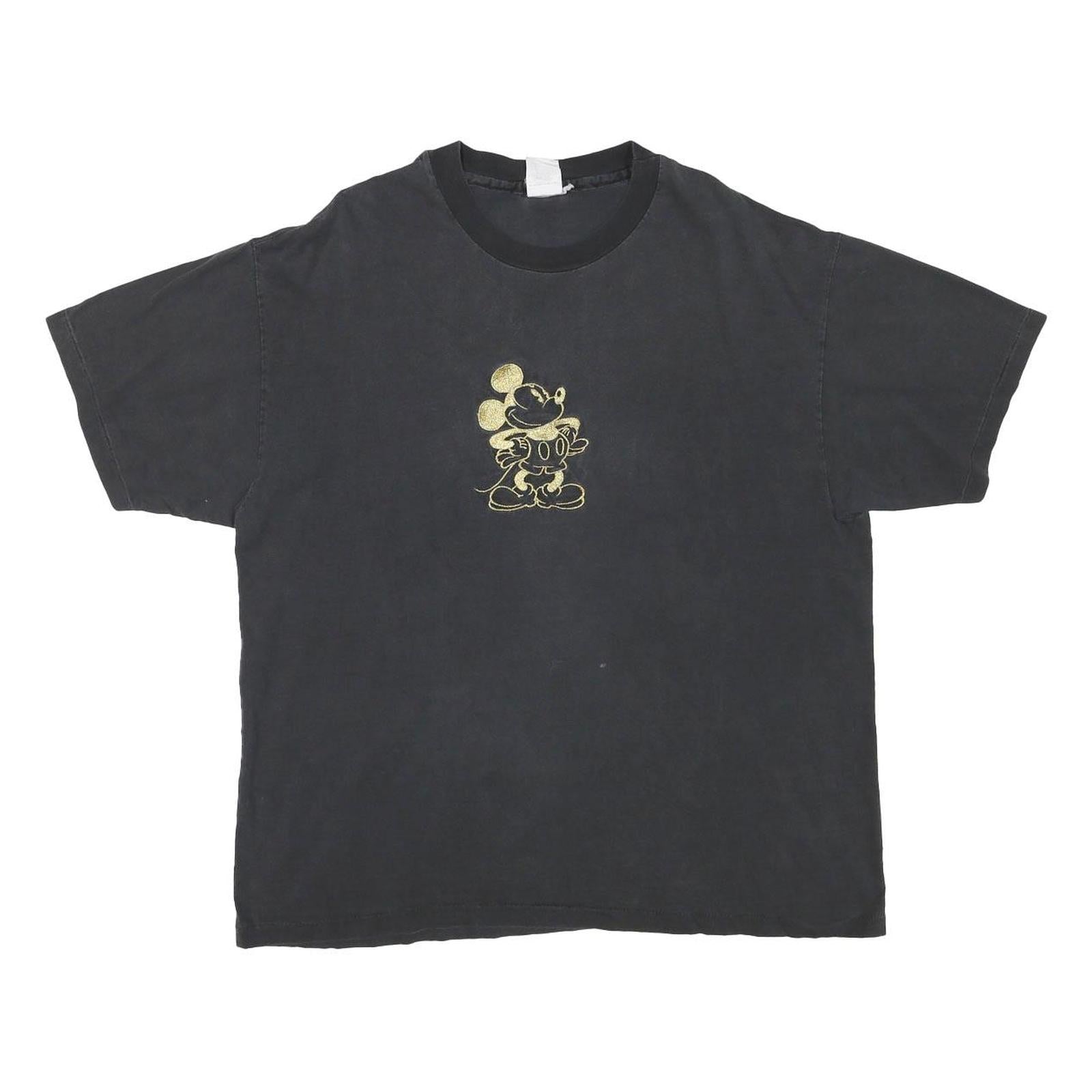 This Mickey Mens T-shirt features a black base with a distinctive gold graphic of Mickey Mouse on the front centre. The graphic outlines the classic character with a metallic effect, adding a vintage-inspired pop to the otherwise simple design. The T-shirt has a crew neck and short sleeves, making it ideal for casual wear.