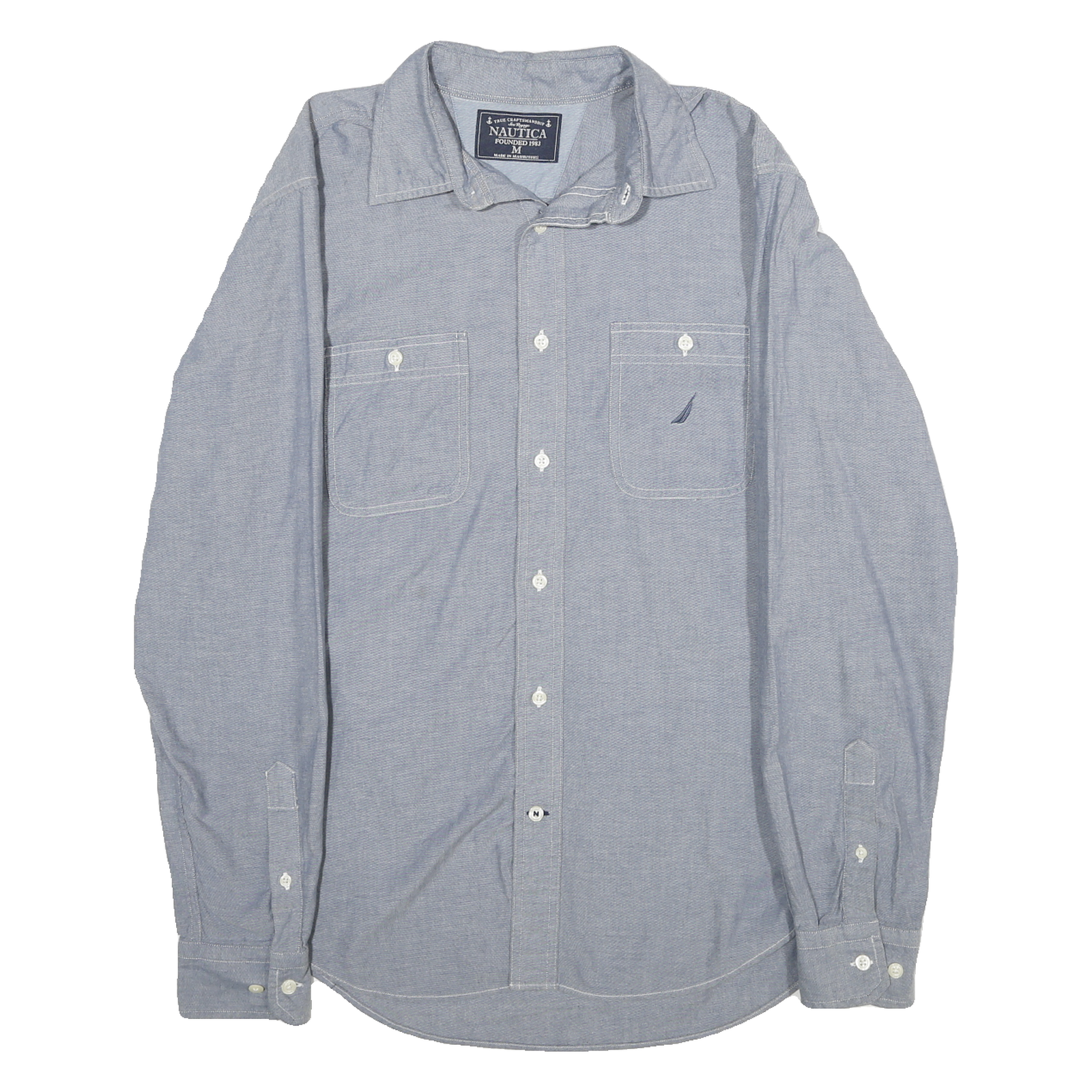 NAUTICA Mens Blue Cotton Shirt M Classic Fit Long Sleeve Button Collar Casual