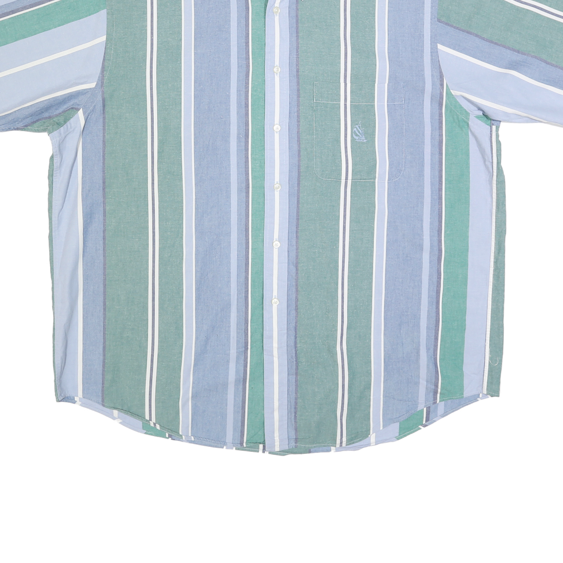 NAUTICA Mens Blue & Green Cotton Striped Shirt XL Button-Down Casual Summer