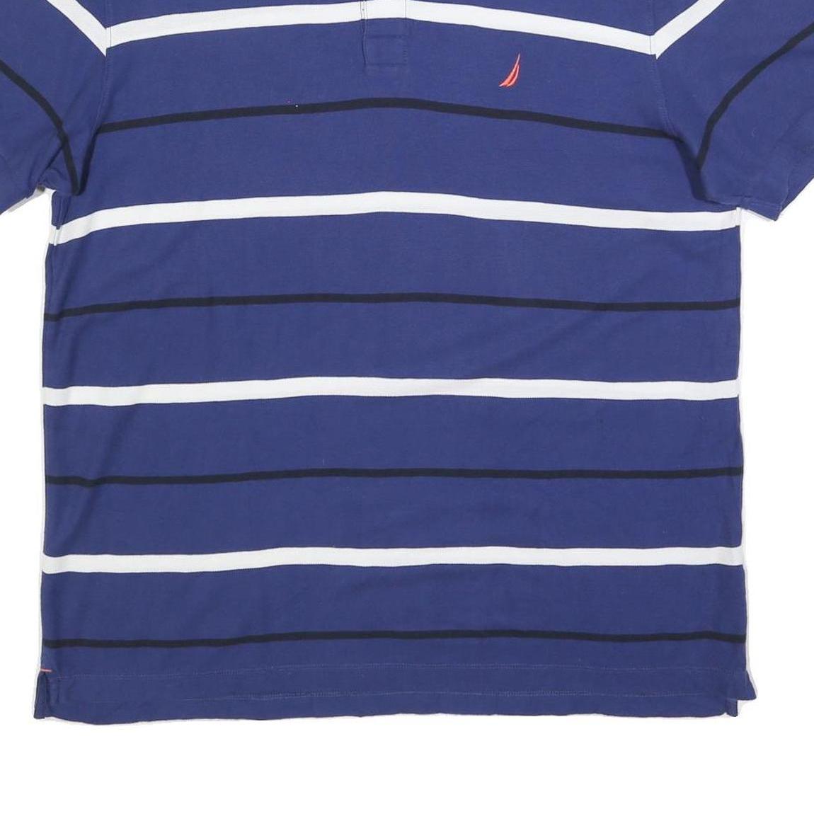 NAUTICA Mens Blue White Striped Short Sleeve Polo Shirt XL Cotton Blend Classic