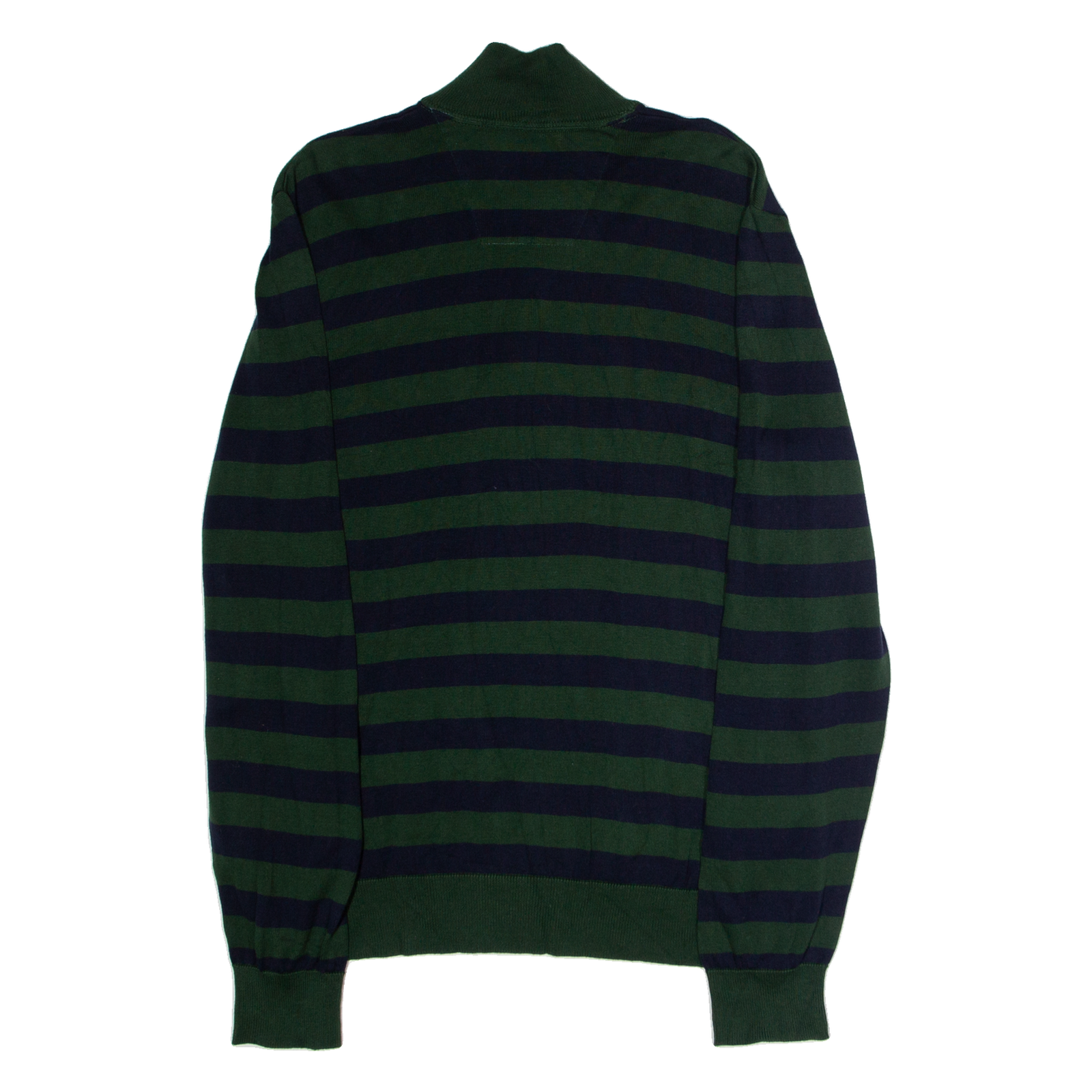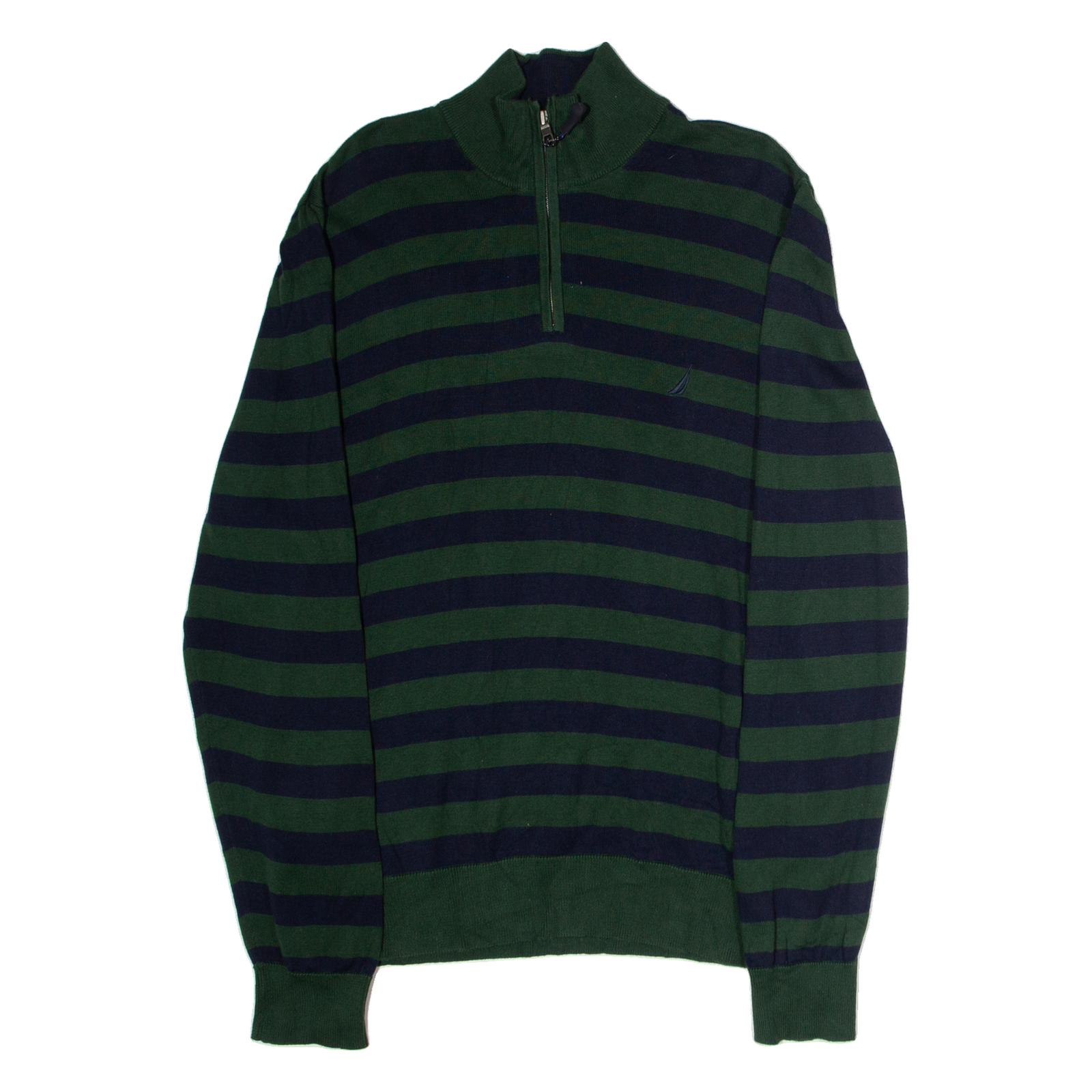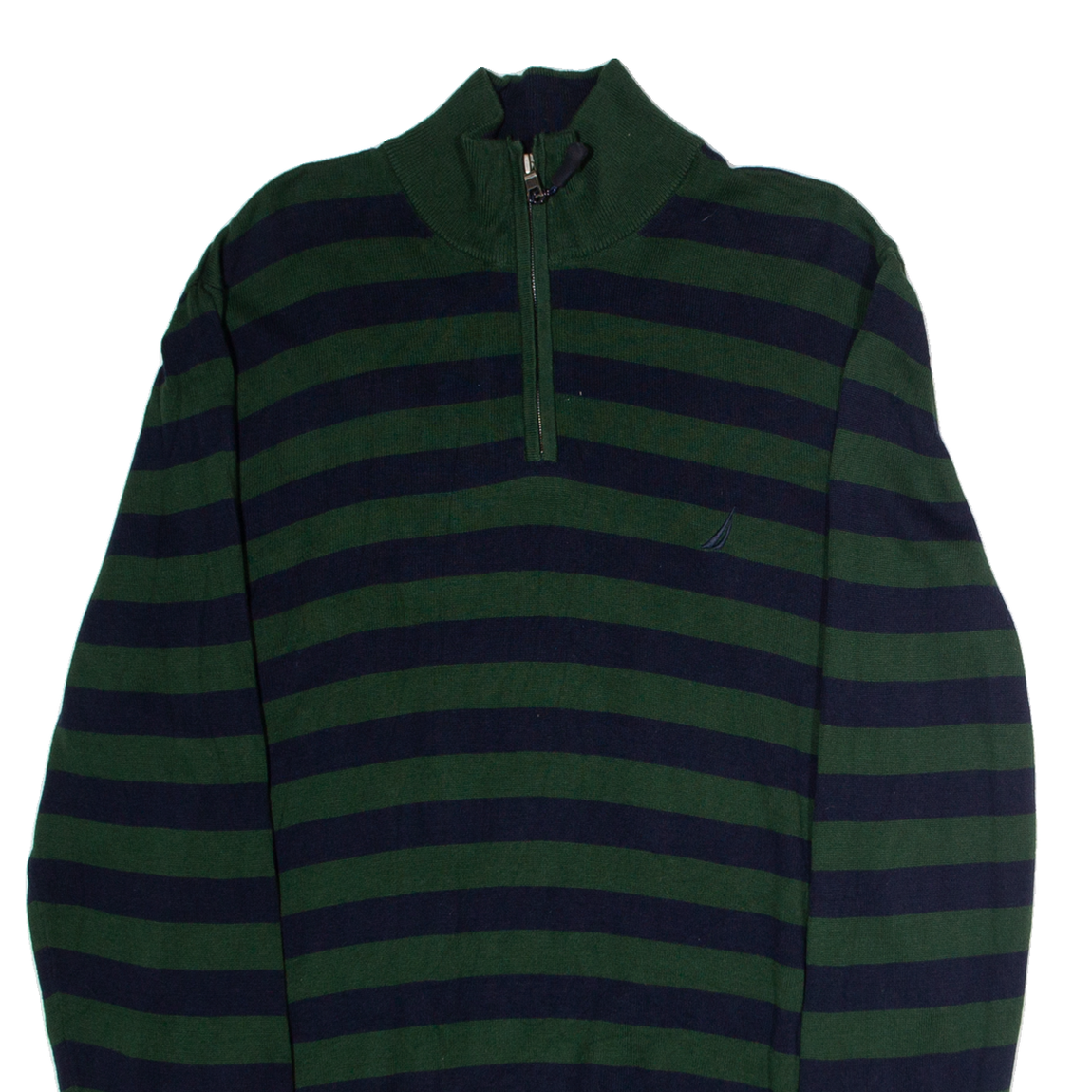NAUTICA Mens Patterned Jumper Green Striped 1/4 Zip Tight Knit L