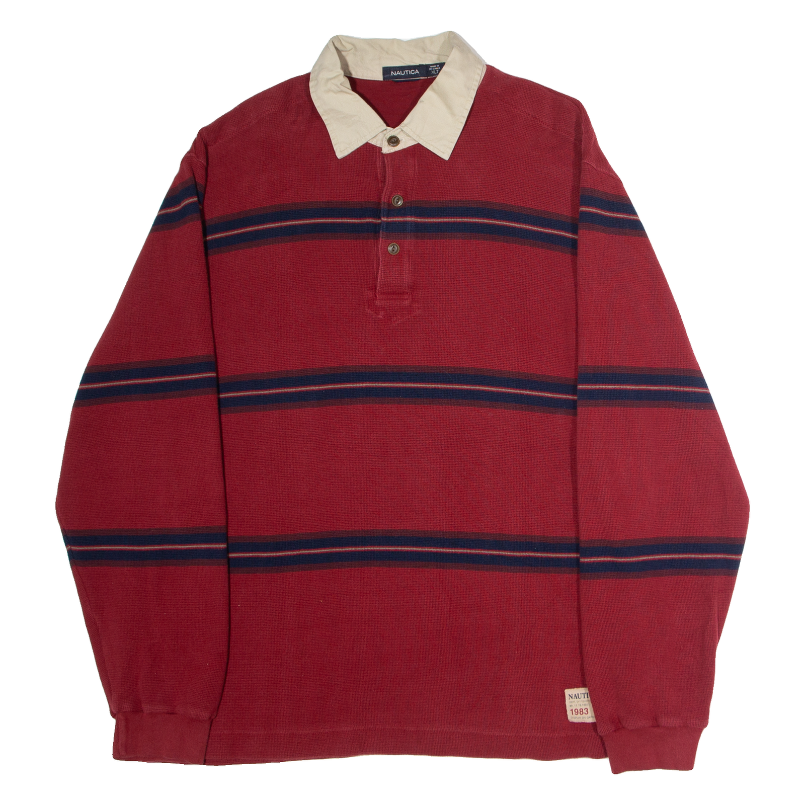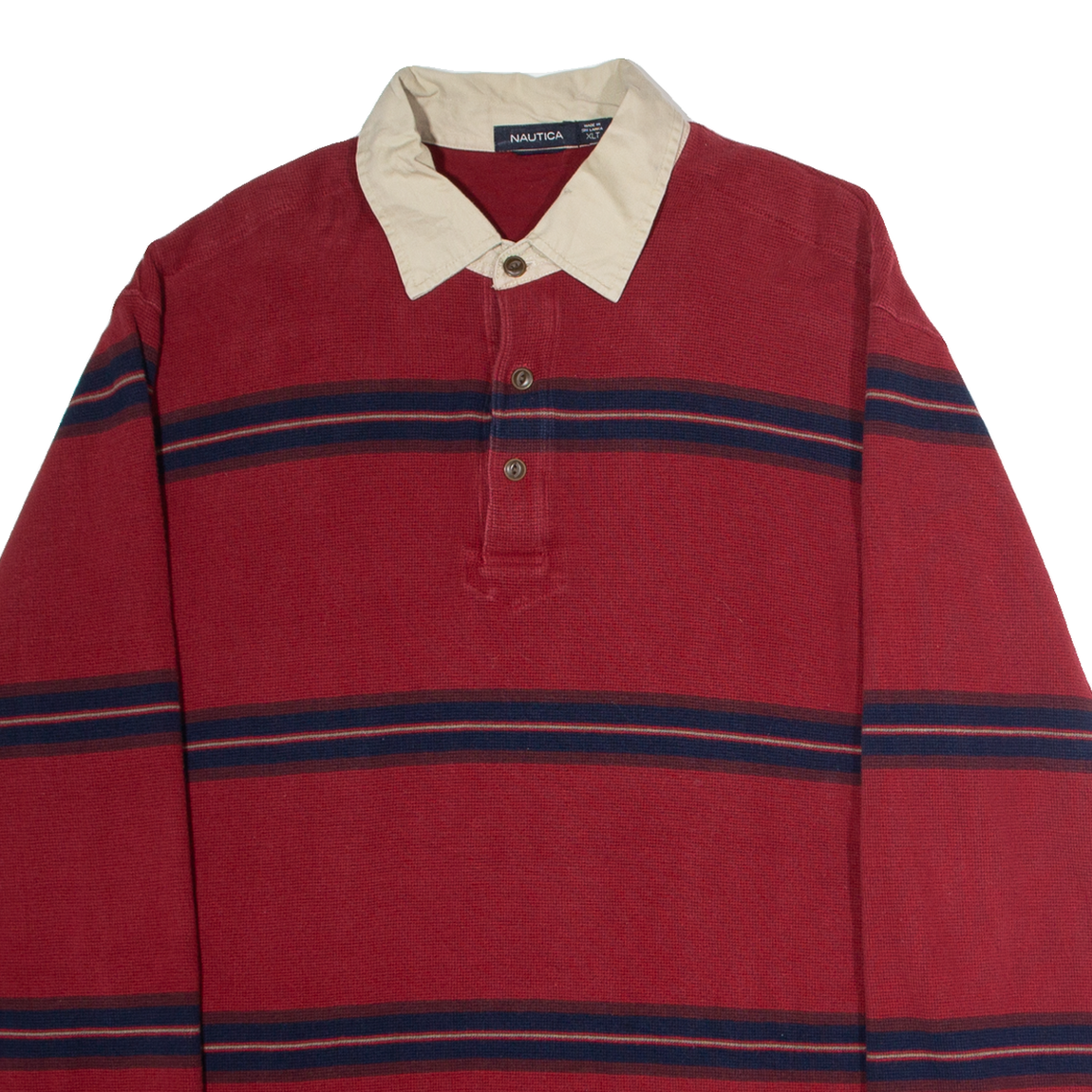 NAUTICA Mens Patterned Jumper Red Striped Collared Waffle Knit XL