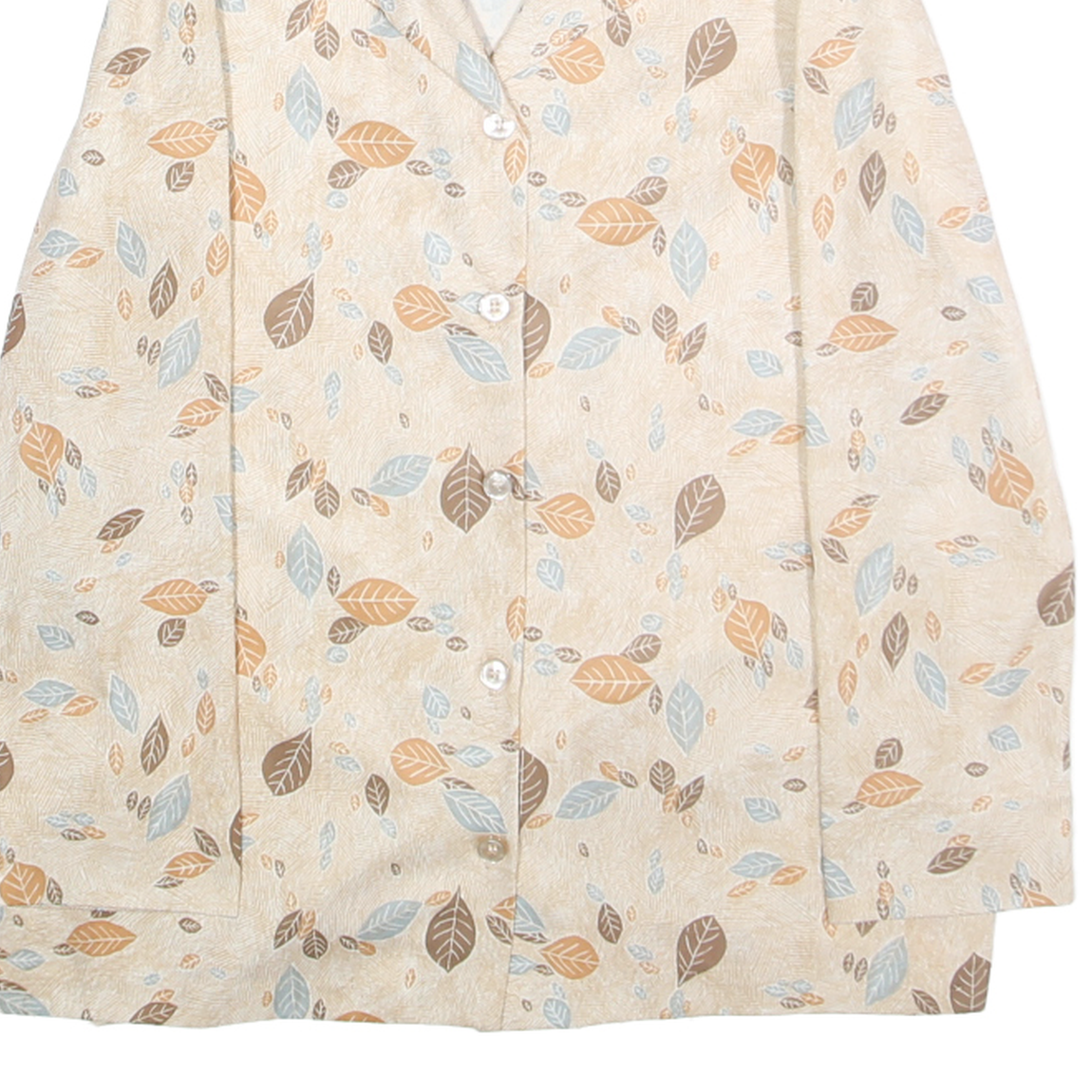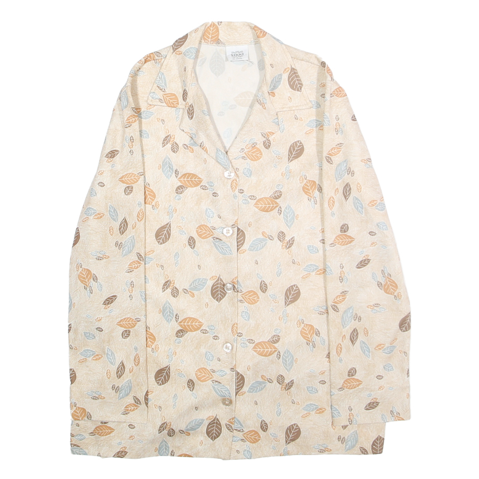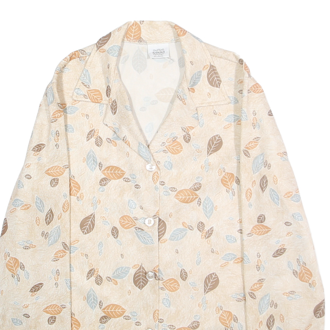 NIKKI Womens Beige & Brown Leaf Print Shirt XS Lightweight Casual Button Up