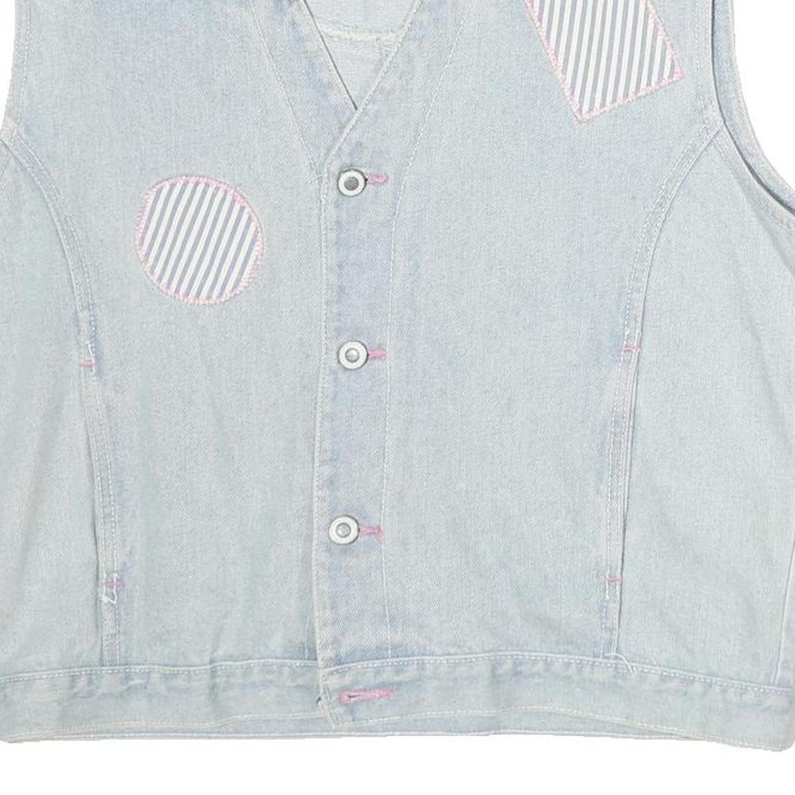 NORVIS Womens Blue Denim Sleeveless Button Jacket M Cotton Stripe Patch