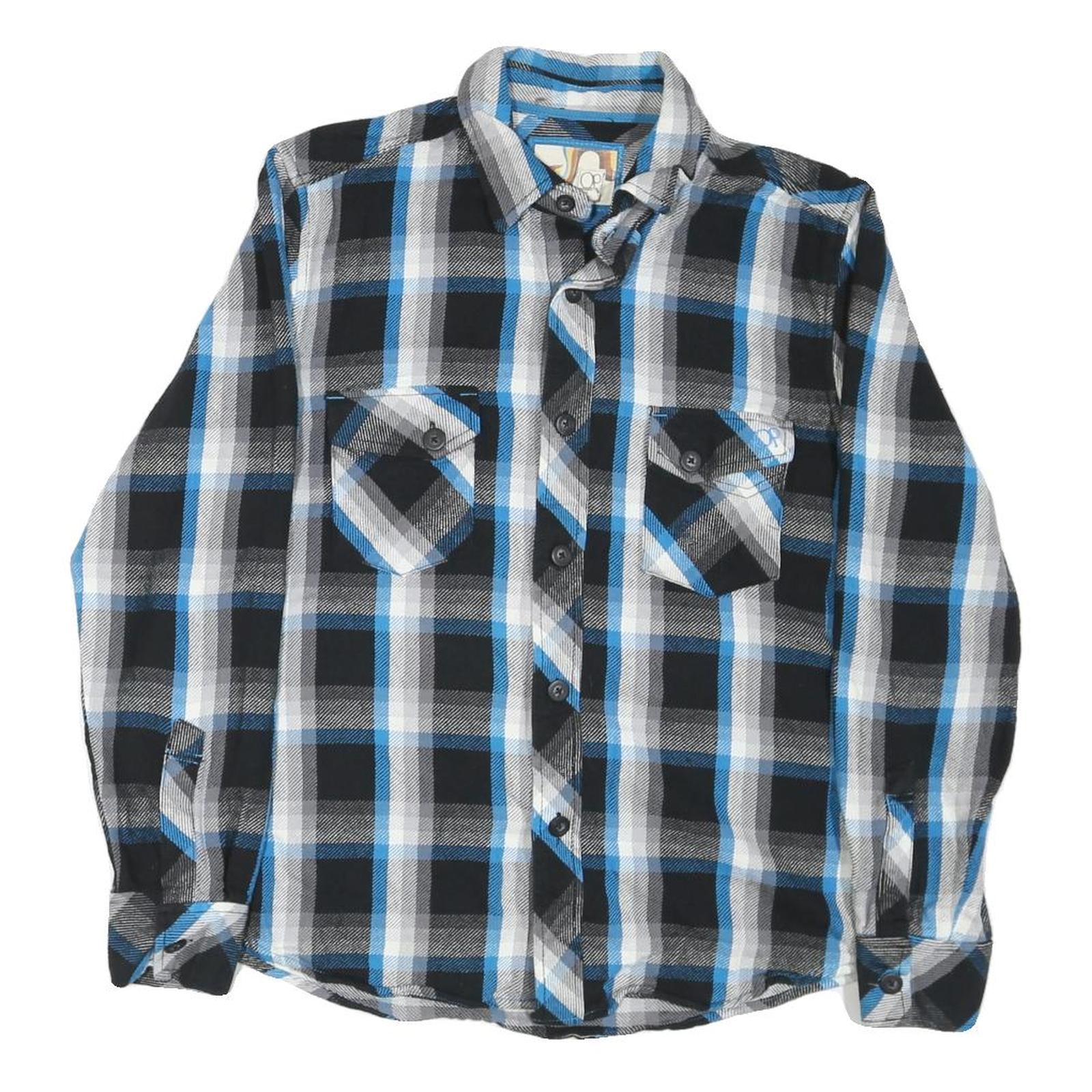 OP Mens Blue & Black Checked Shirt L Cotton Blend Casual Long Sleeve