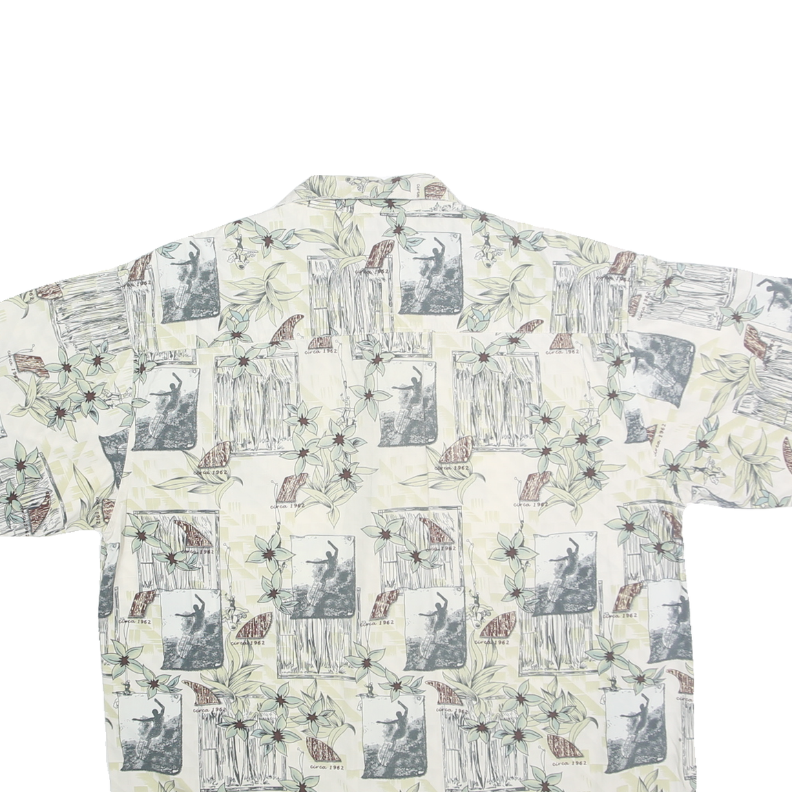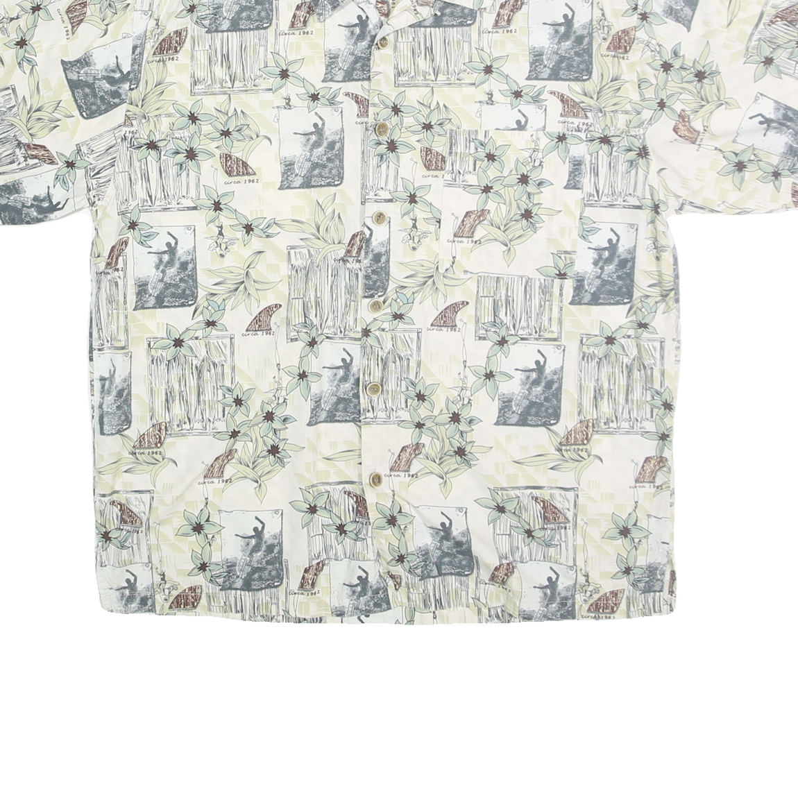 OP SPORT Mens Cream Cotton Hawaiian Shirt L Casual Summer Tropical Print