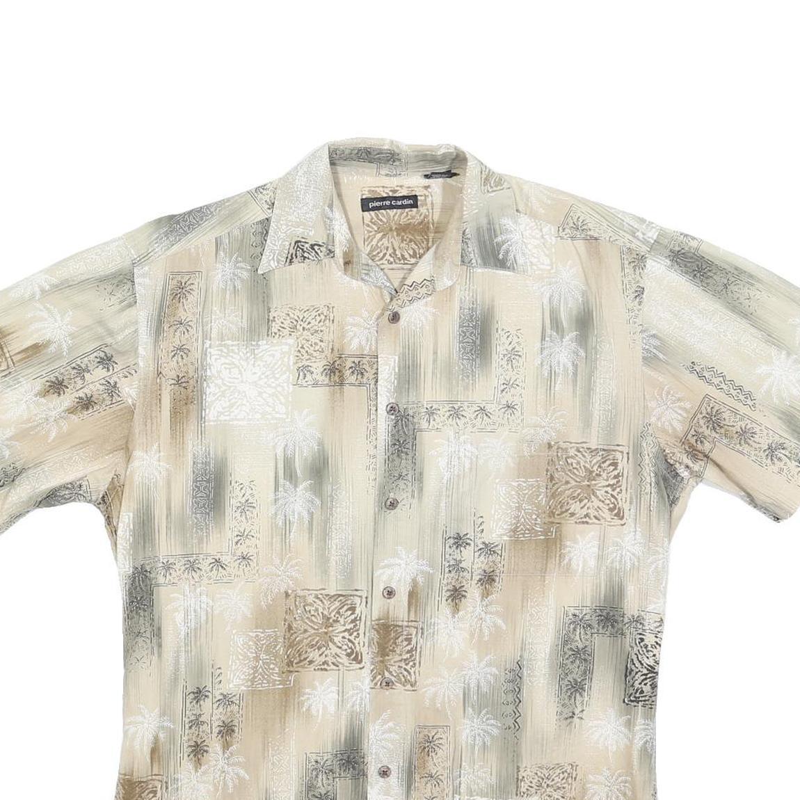 PIERRE CARDIN Mens Beige Patterned Short Sleeve Shirt S Cotton Blend Casual
