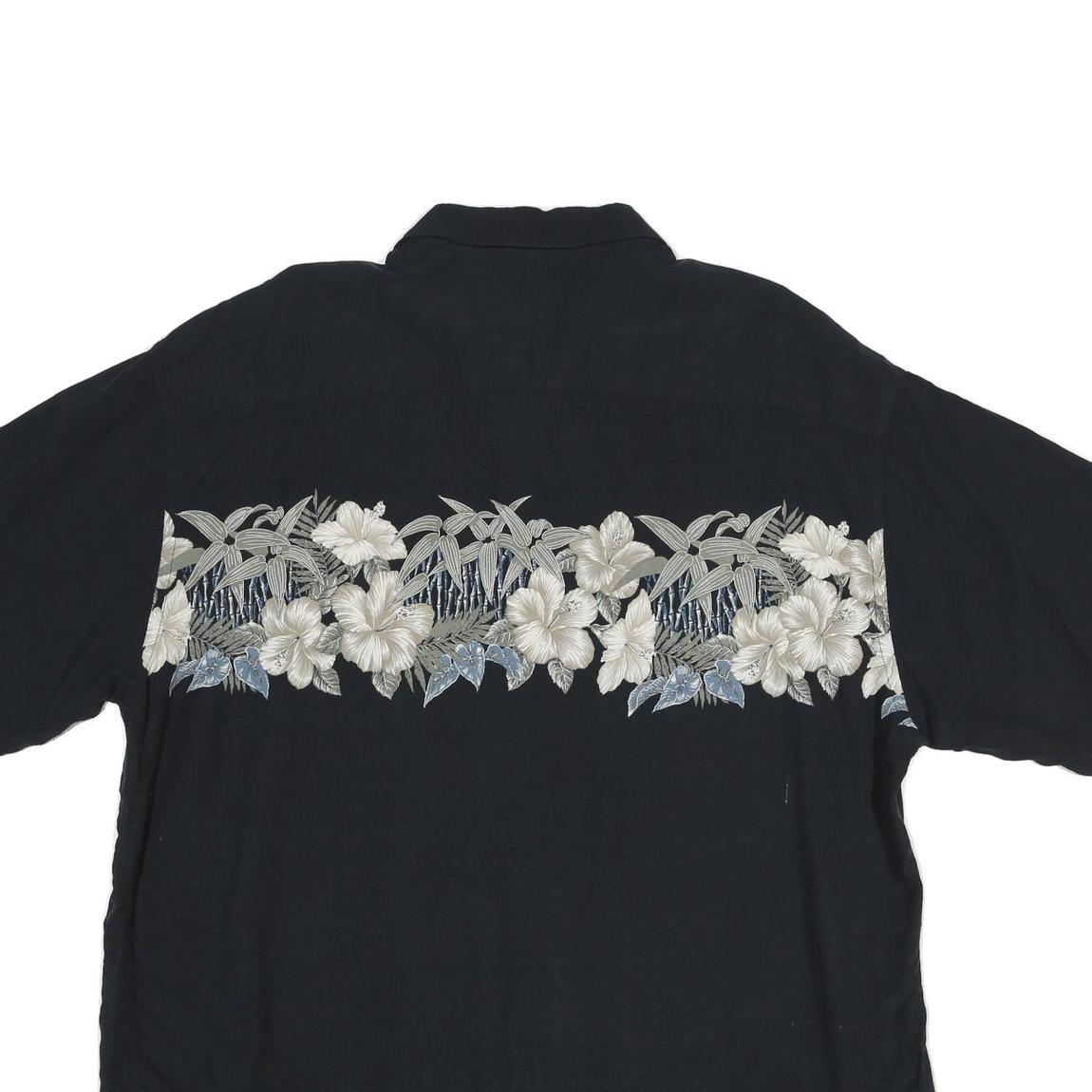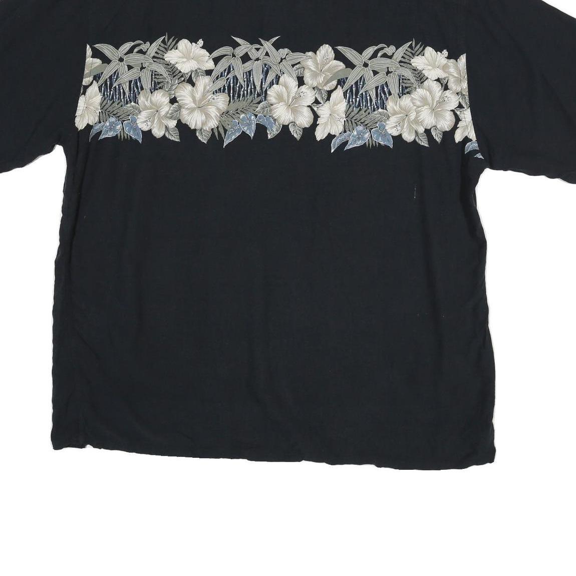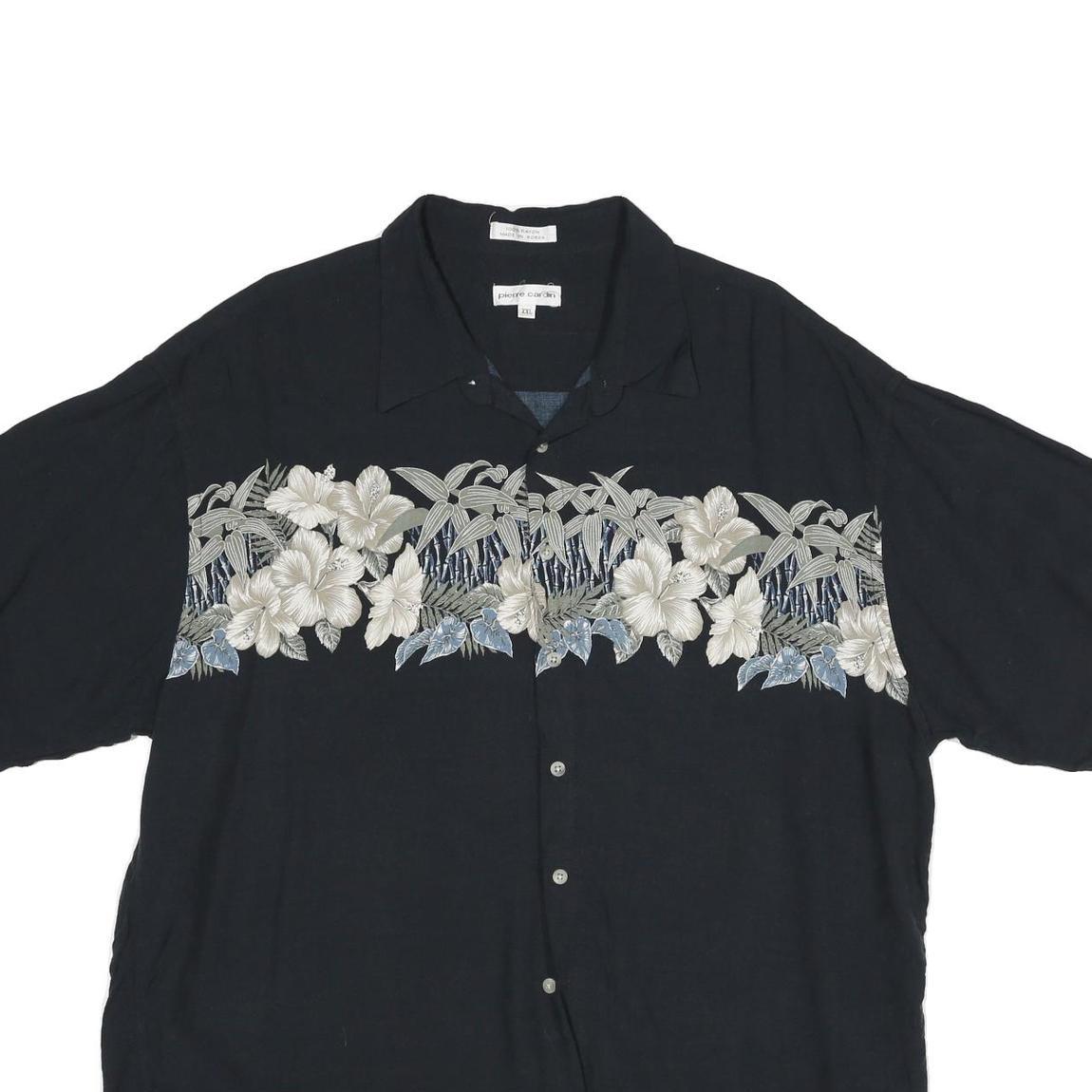 PIERRE CARDIN Mens Black Shirt 2XL Rayon Hawaiian Floral Summer Casual Relaxed