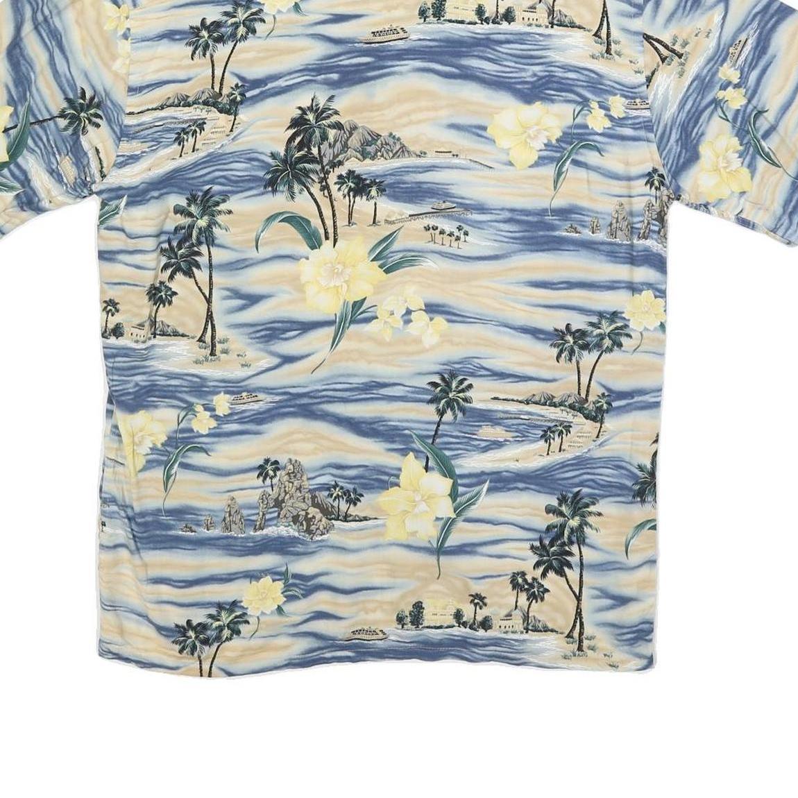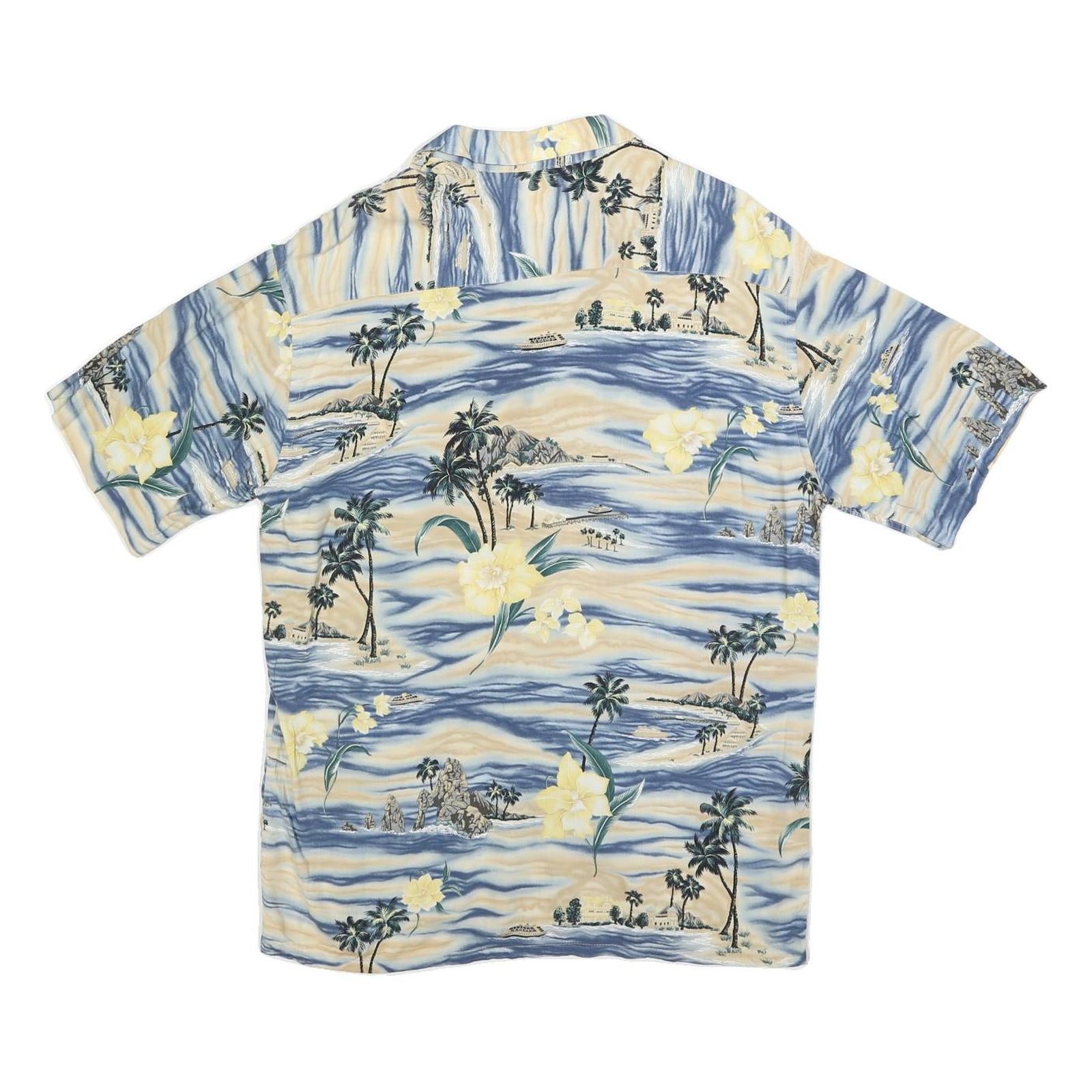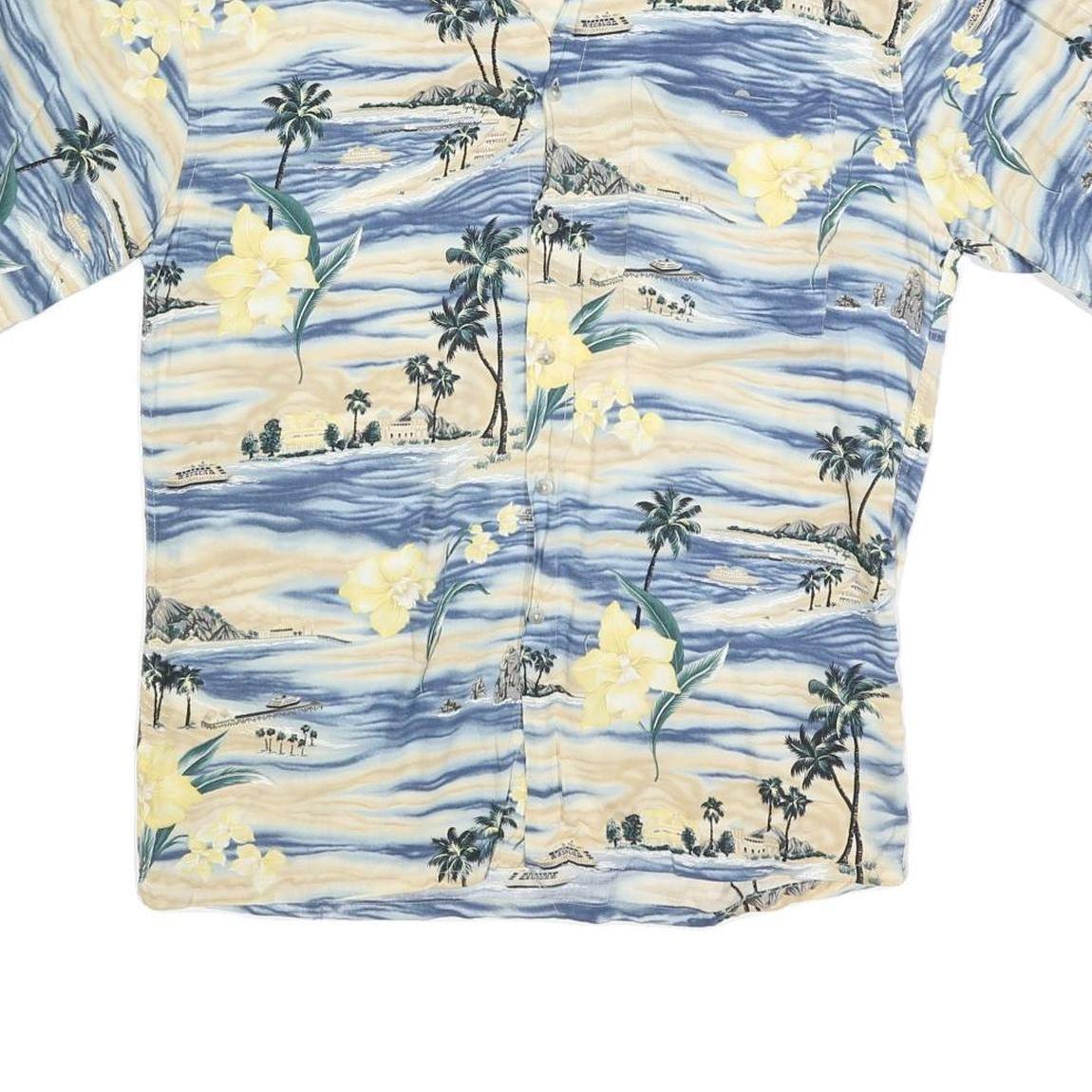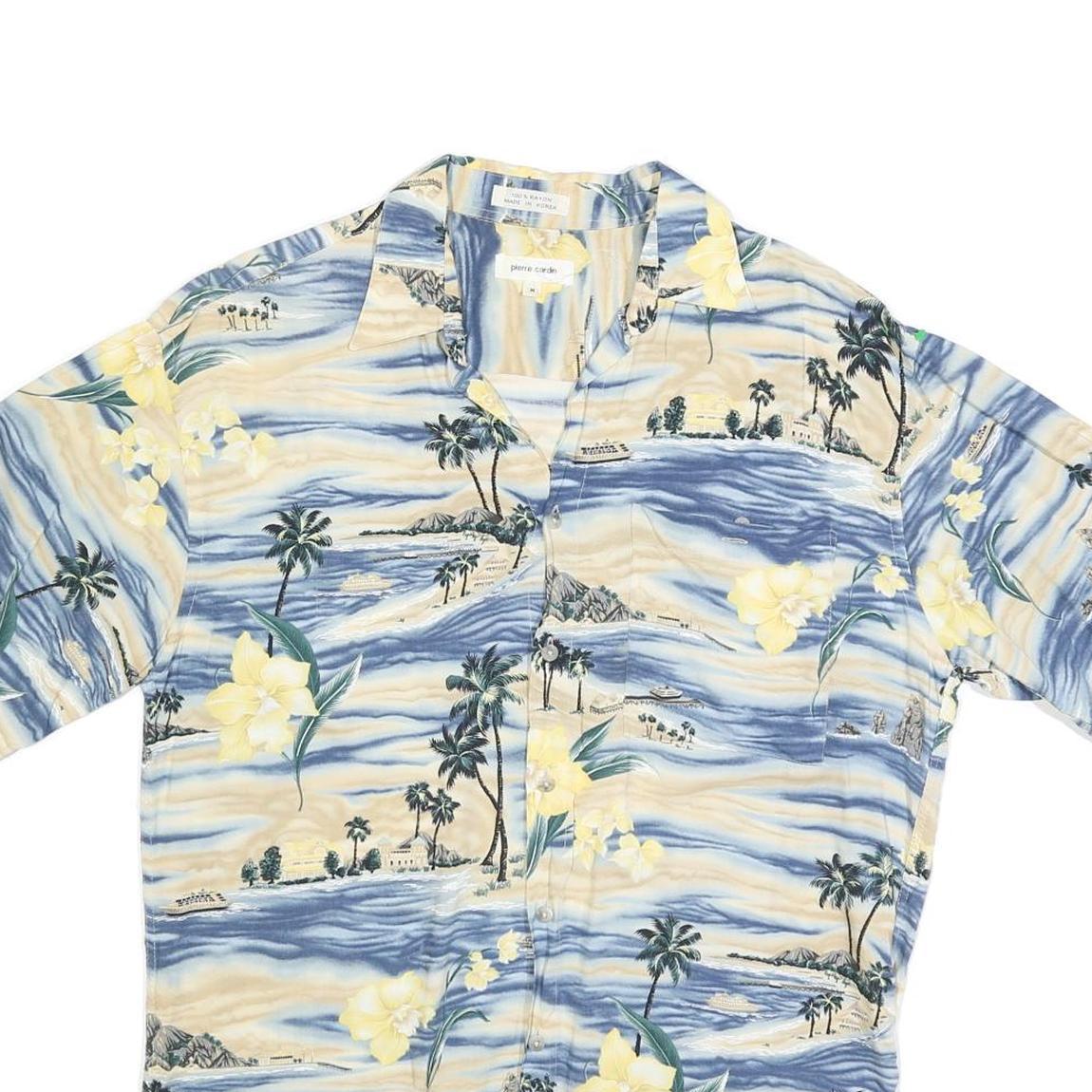 PIERRE CARDIN Mens Blue & Cream Hawaiian Shirt M Rayon Relaxed Fit