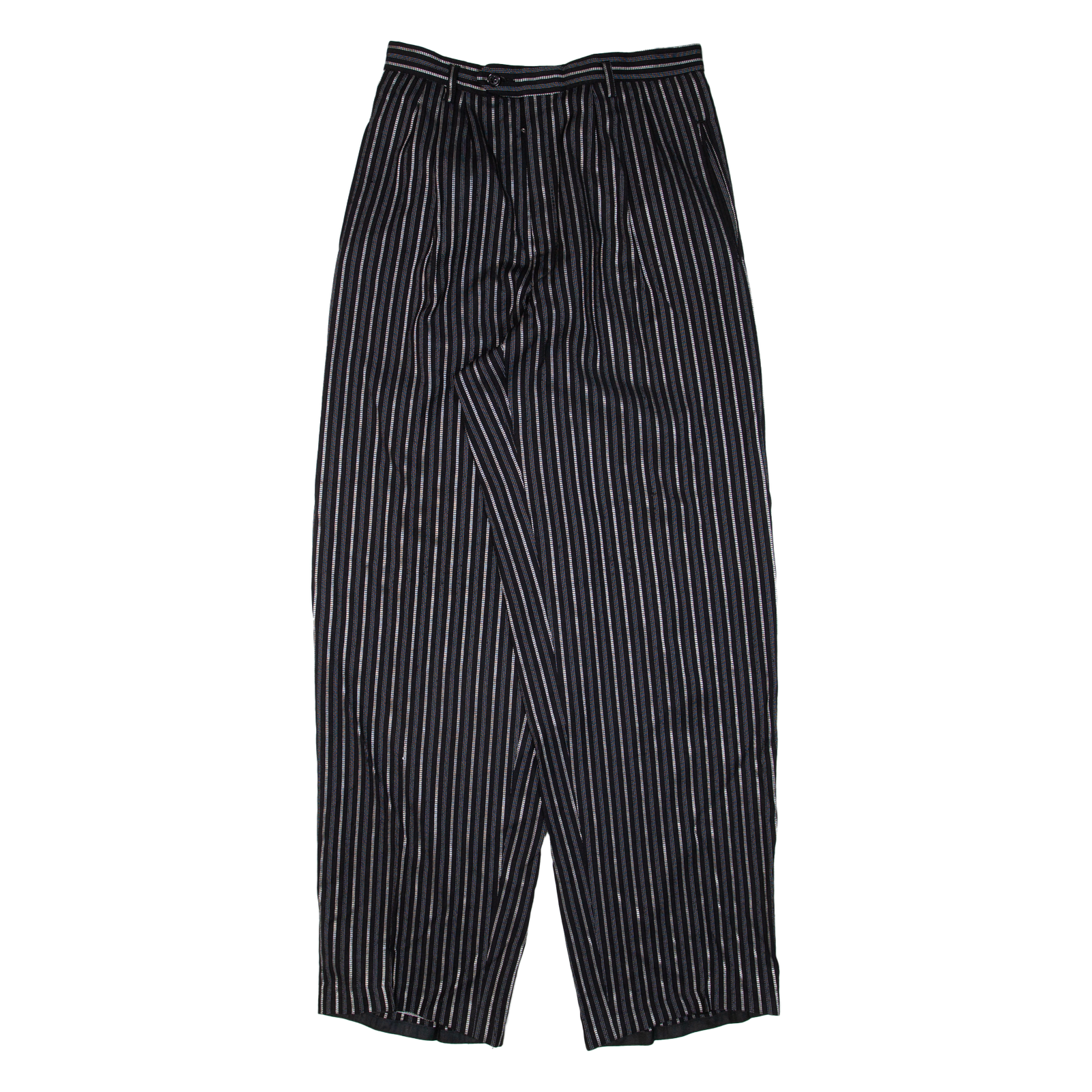 Pleated Striped Womens Trousers Black Loose Tapered W27 L30