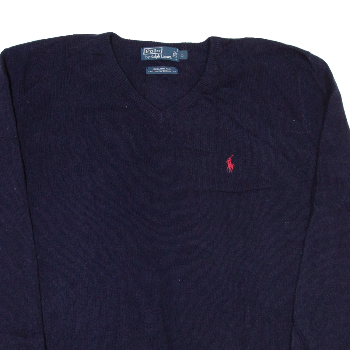 POLO RALPH LAUREN Mens Jumper Blue V-Neck Tight Knit Wool L