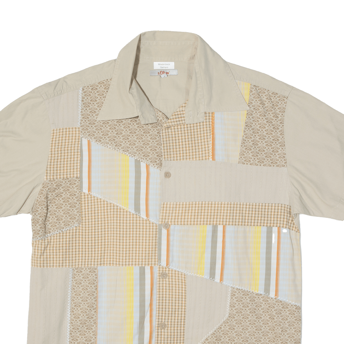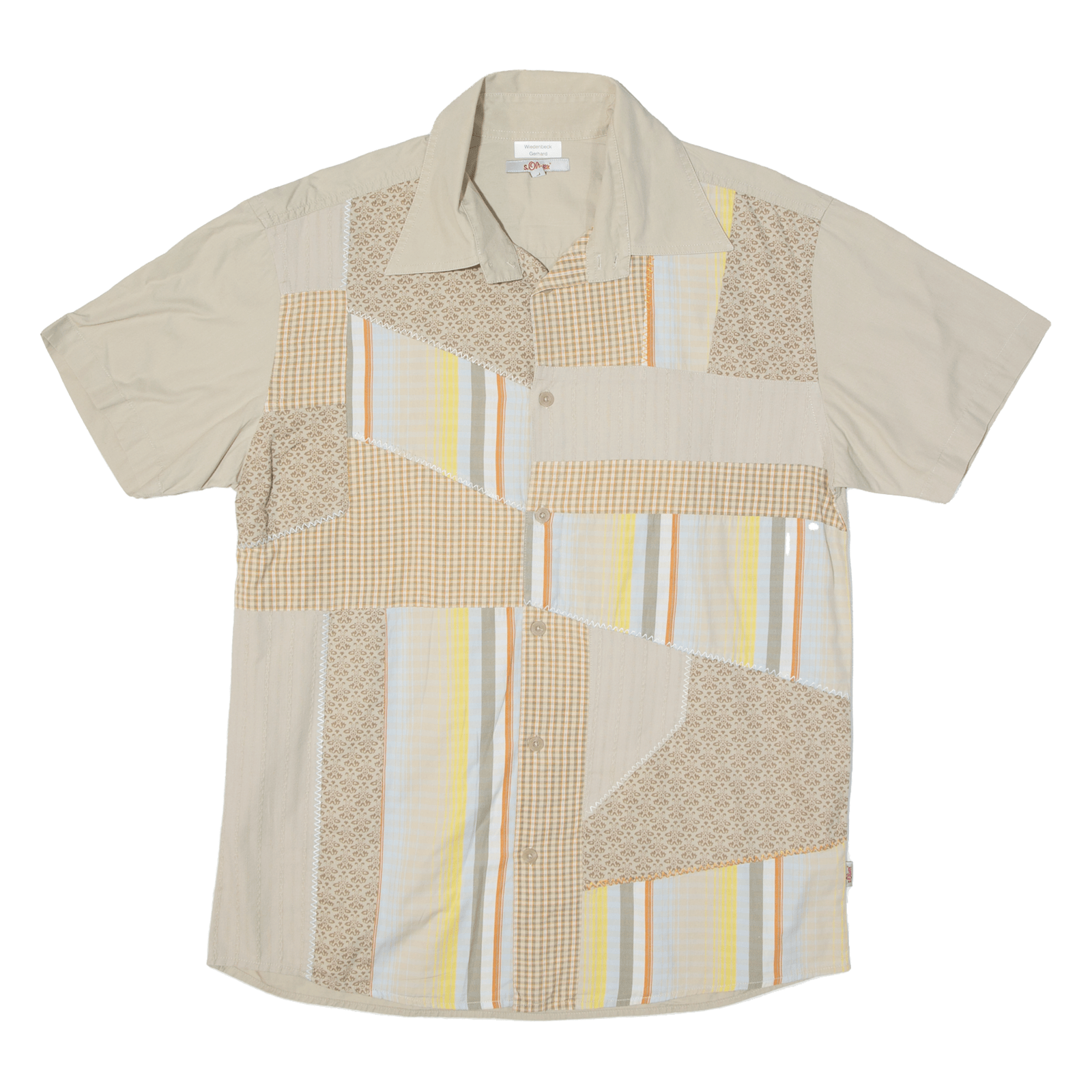 S. OLIVER Mens Shirt Beige Patchwork L