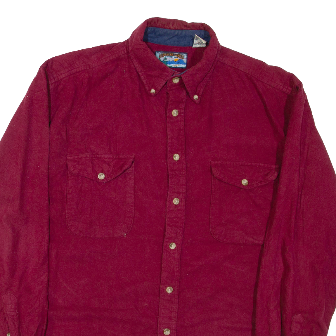 SHAVER LAKE Mens Plain Shirt Maroon Long Sleeve XL