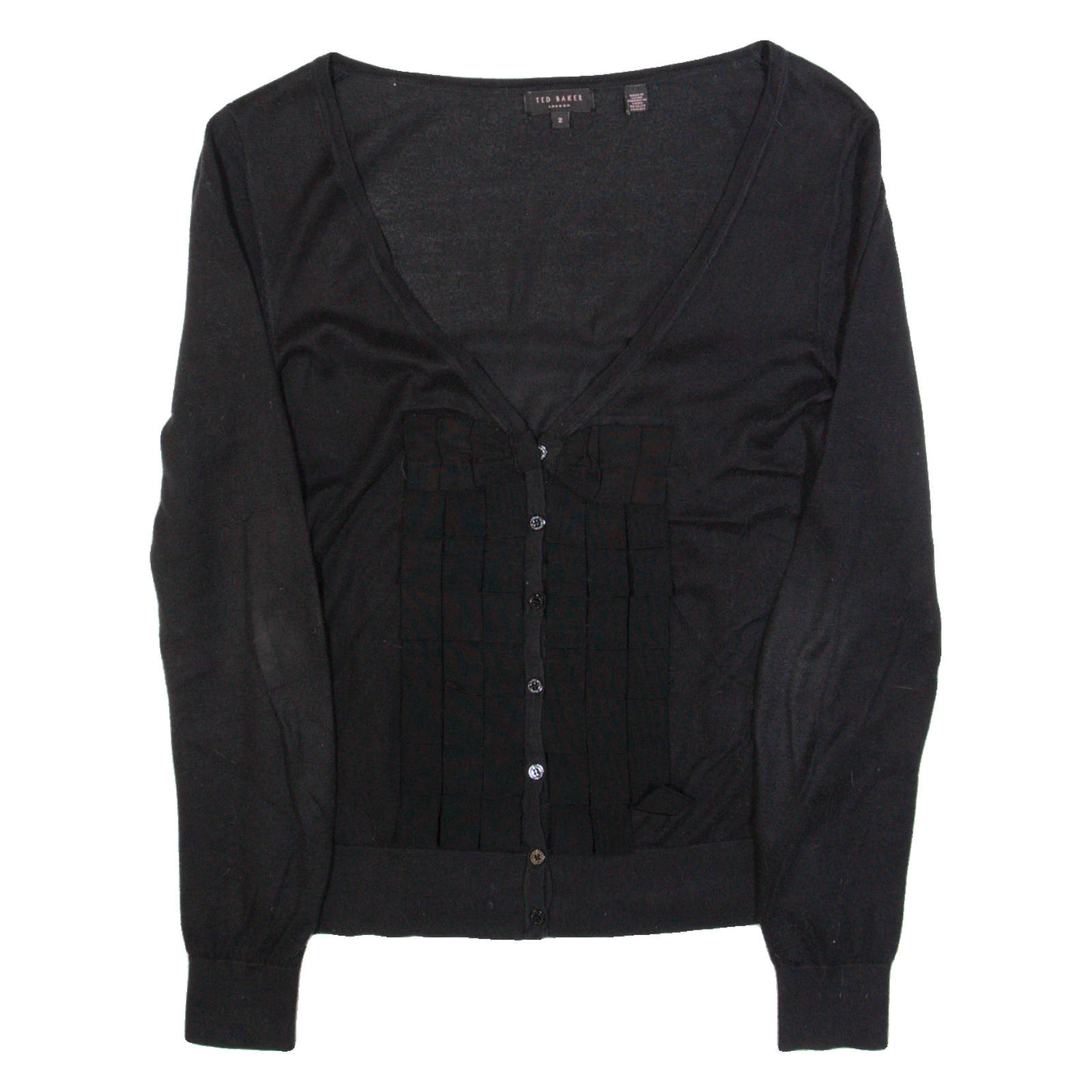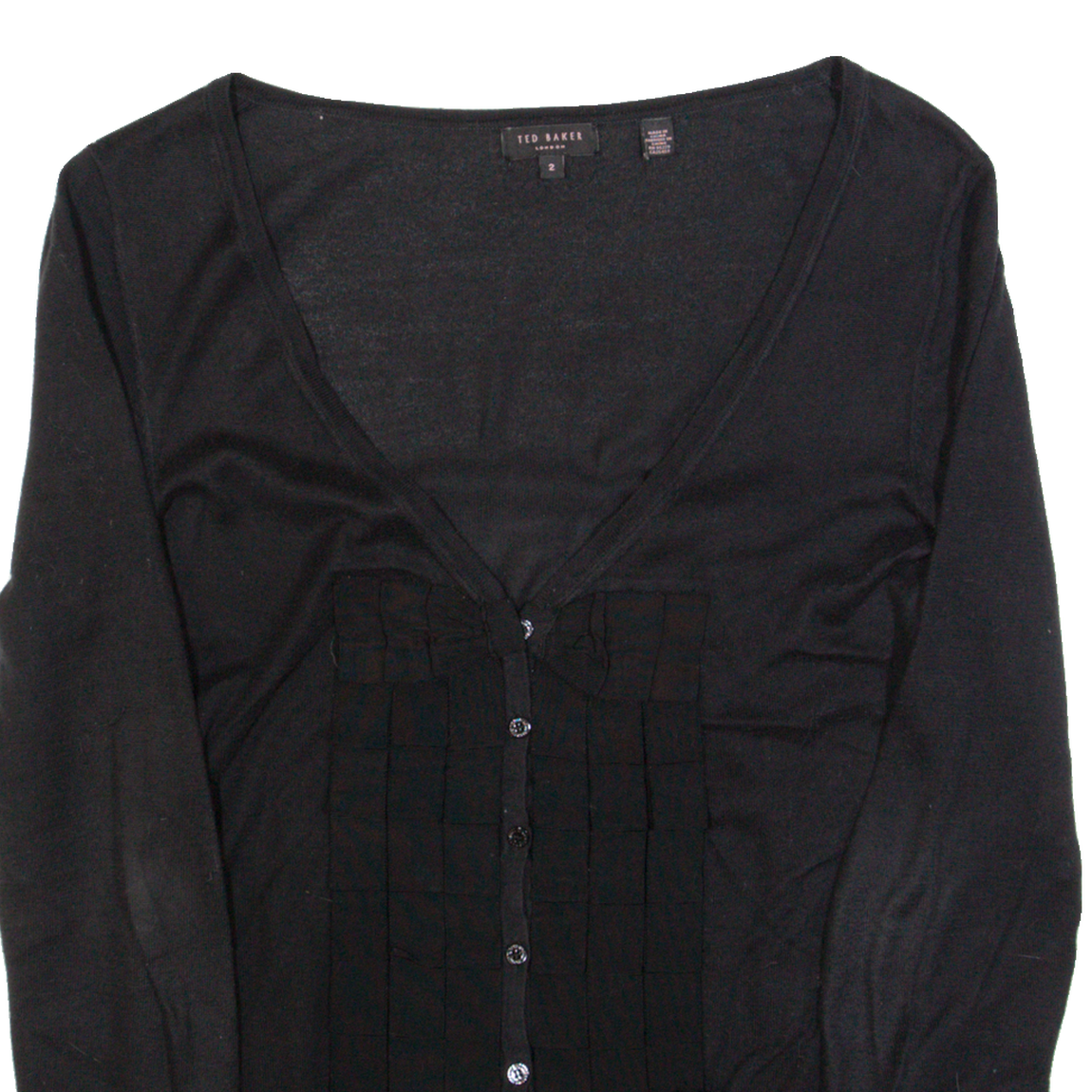 TED BAKER Womens Cardigan Black V-Neck Tight Knit S