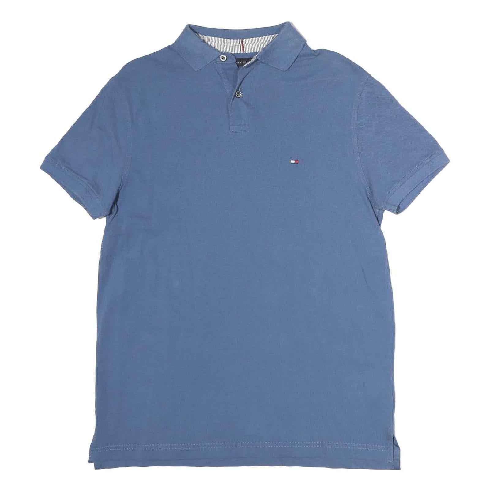TOMMY HILFIGER Mens Blue Short Sleeve Plain S Cotton Polo Shirt Casual