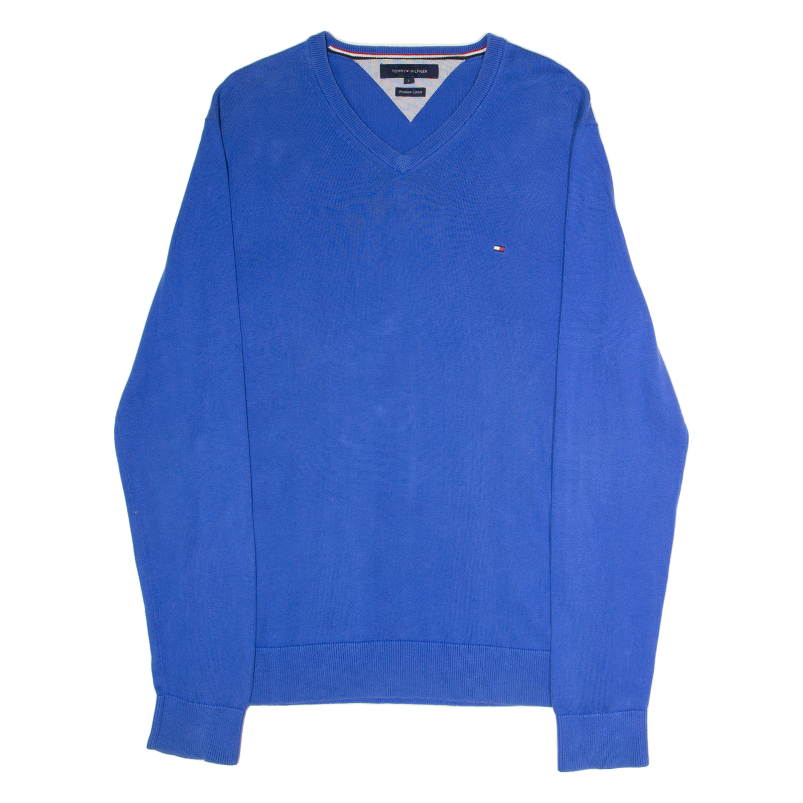 TOMMY HILFIGER Mens Jumper Blue V-Neck Tight Knit L