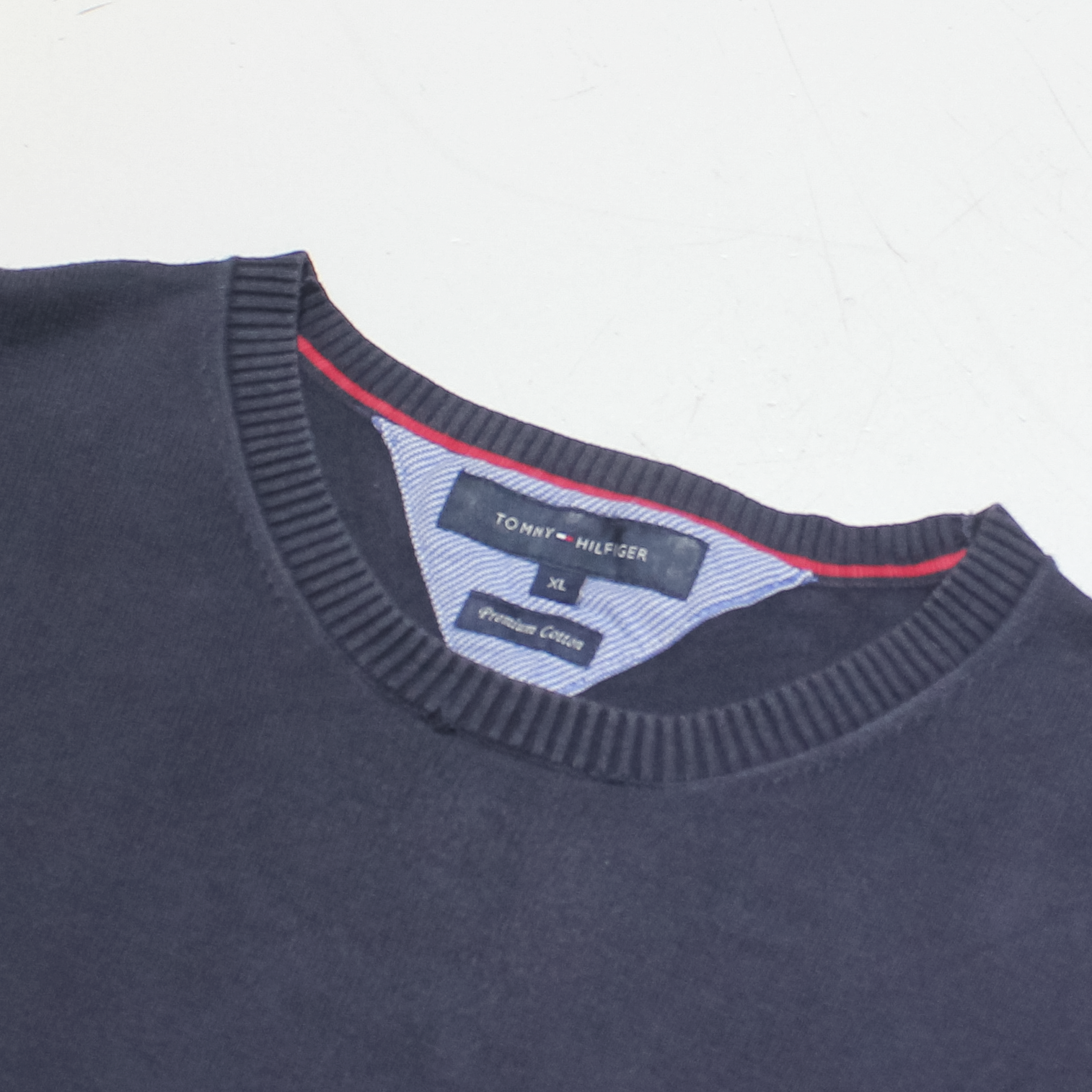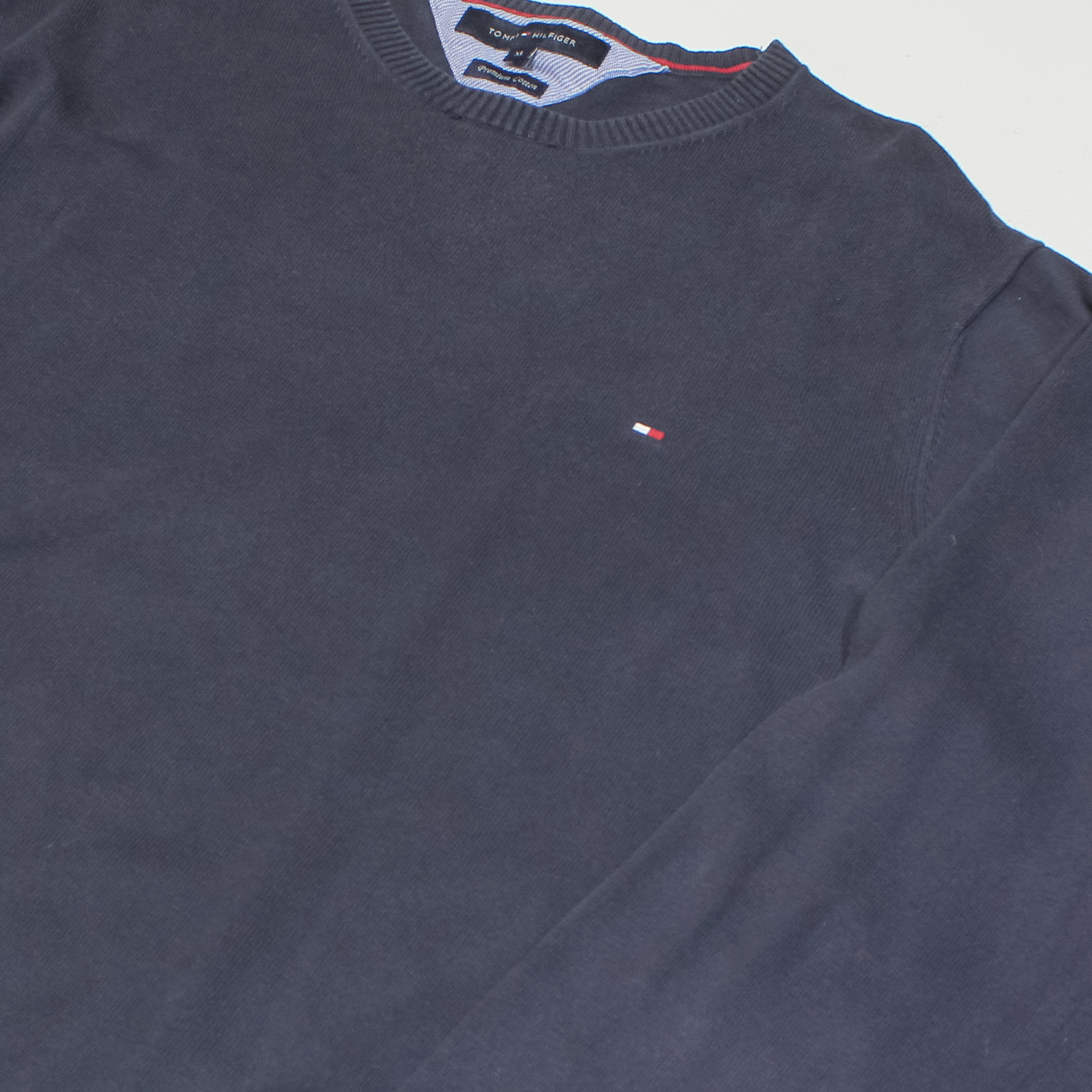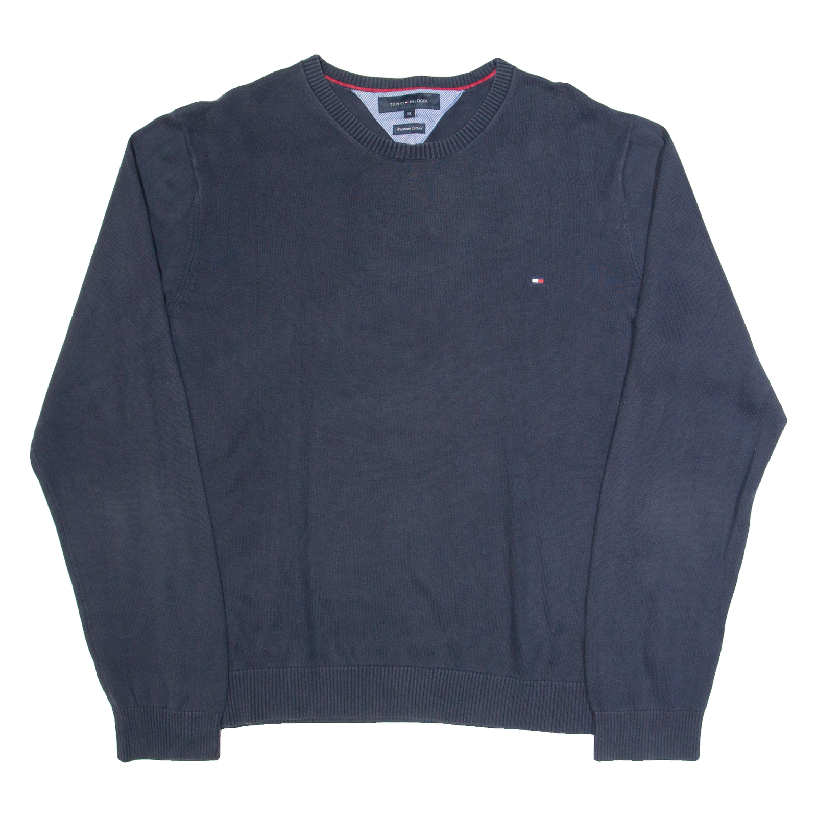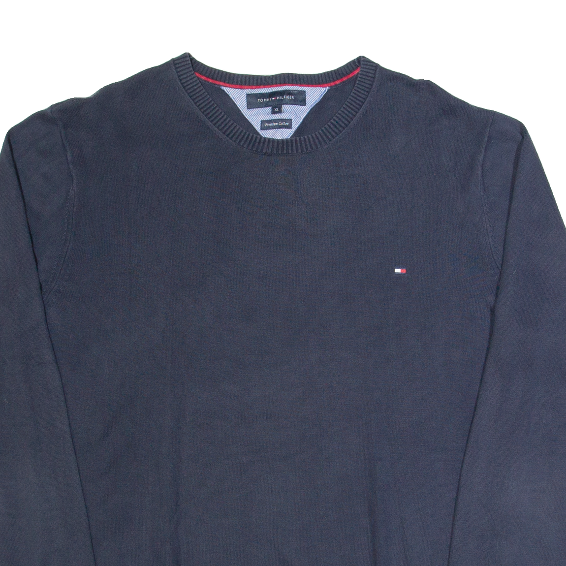 TOMMY HILFIGER Mens Jumper Blue V-Neck Tight Knit L