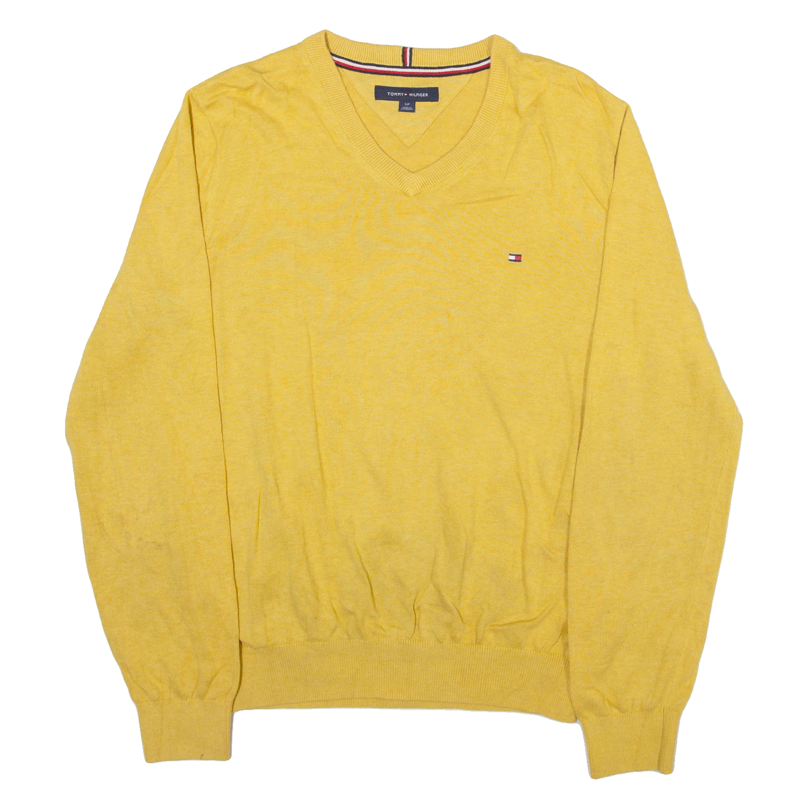 TOMMY HILFIGER Mens Jumper Yellow V-Neck Tight Knit S