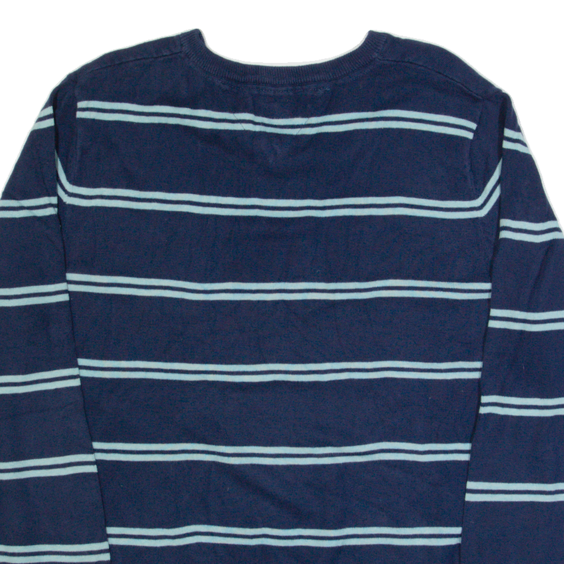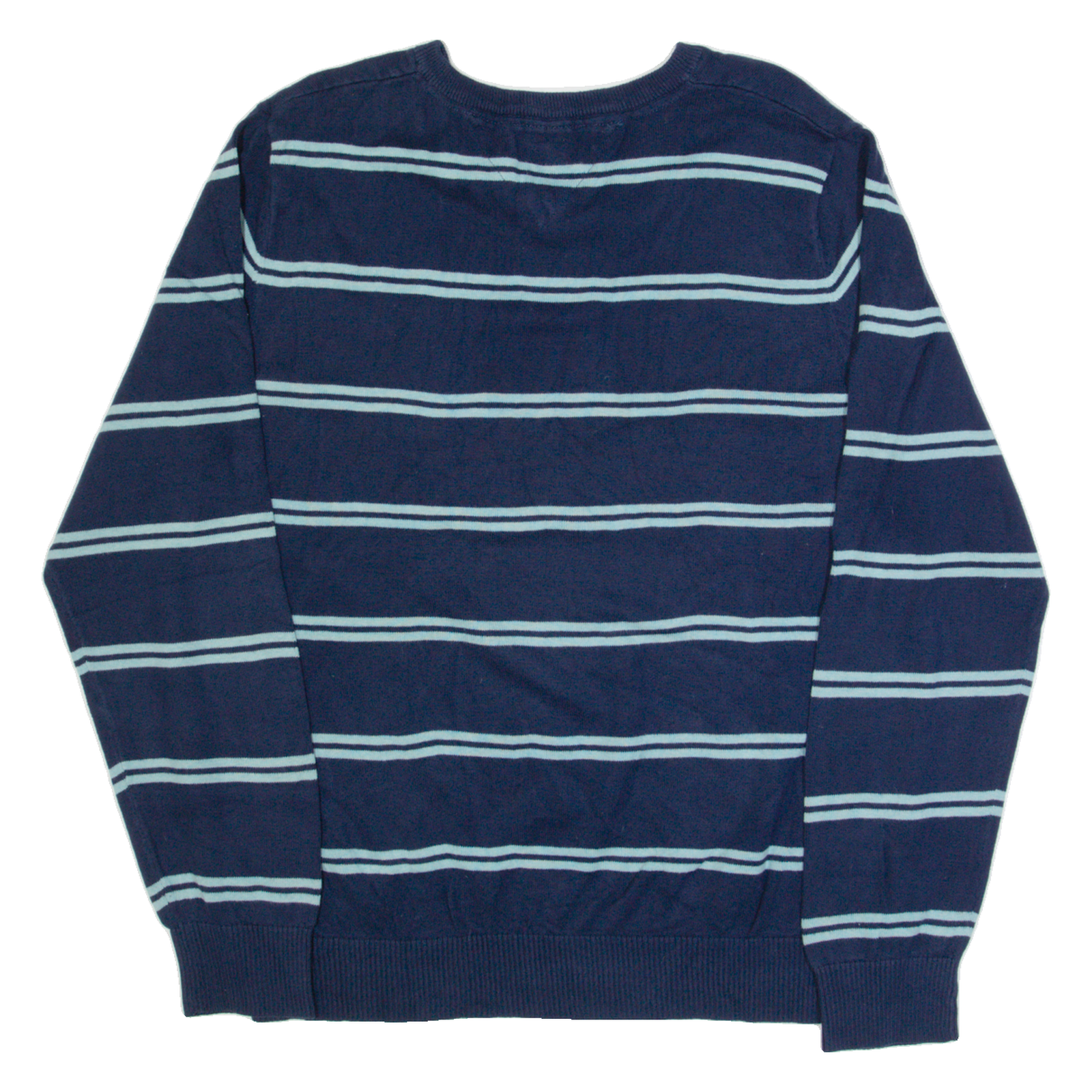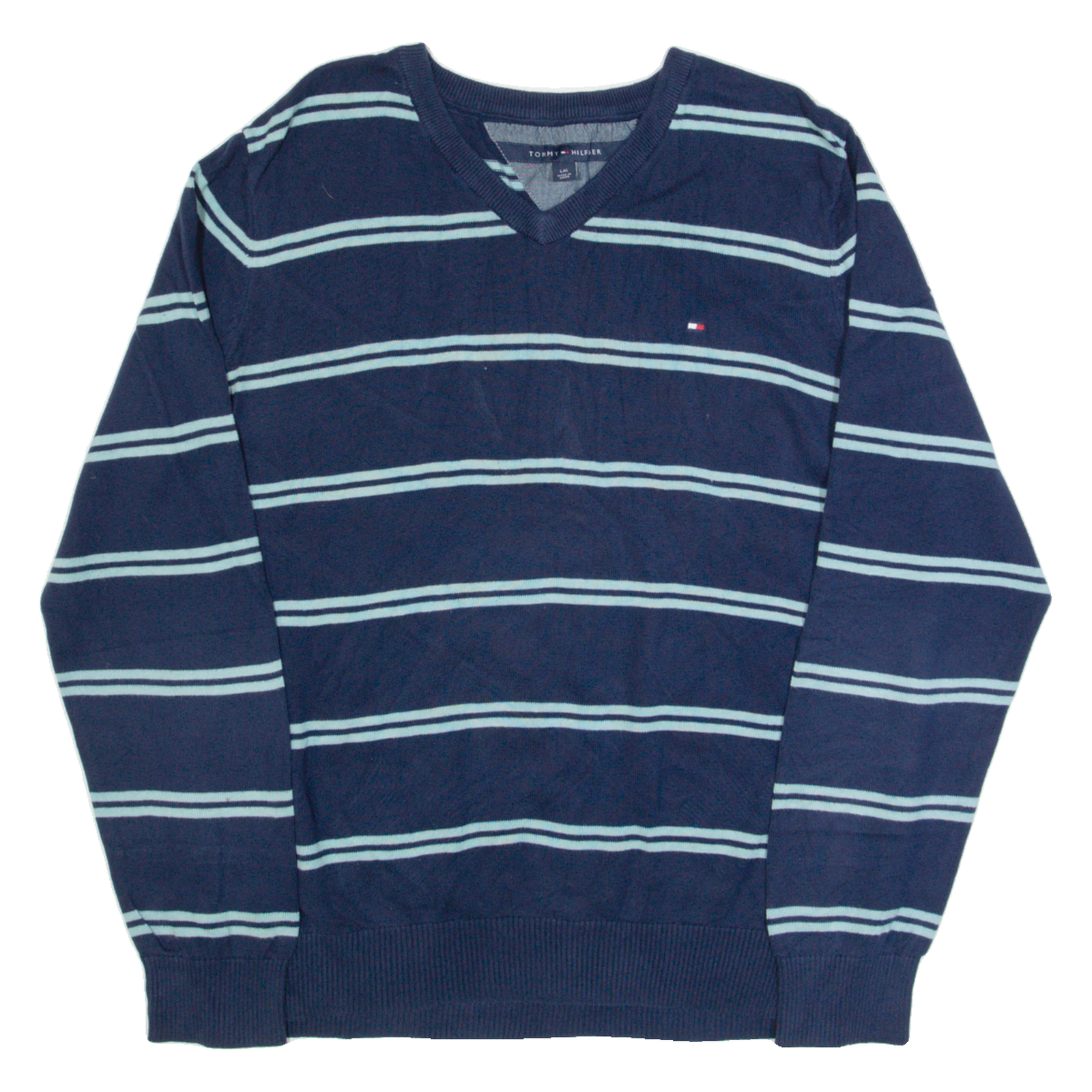 TOMMY HILFIGER Mens Patterned Jumper Blue Striped V-Neck Tight Knit L