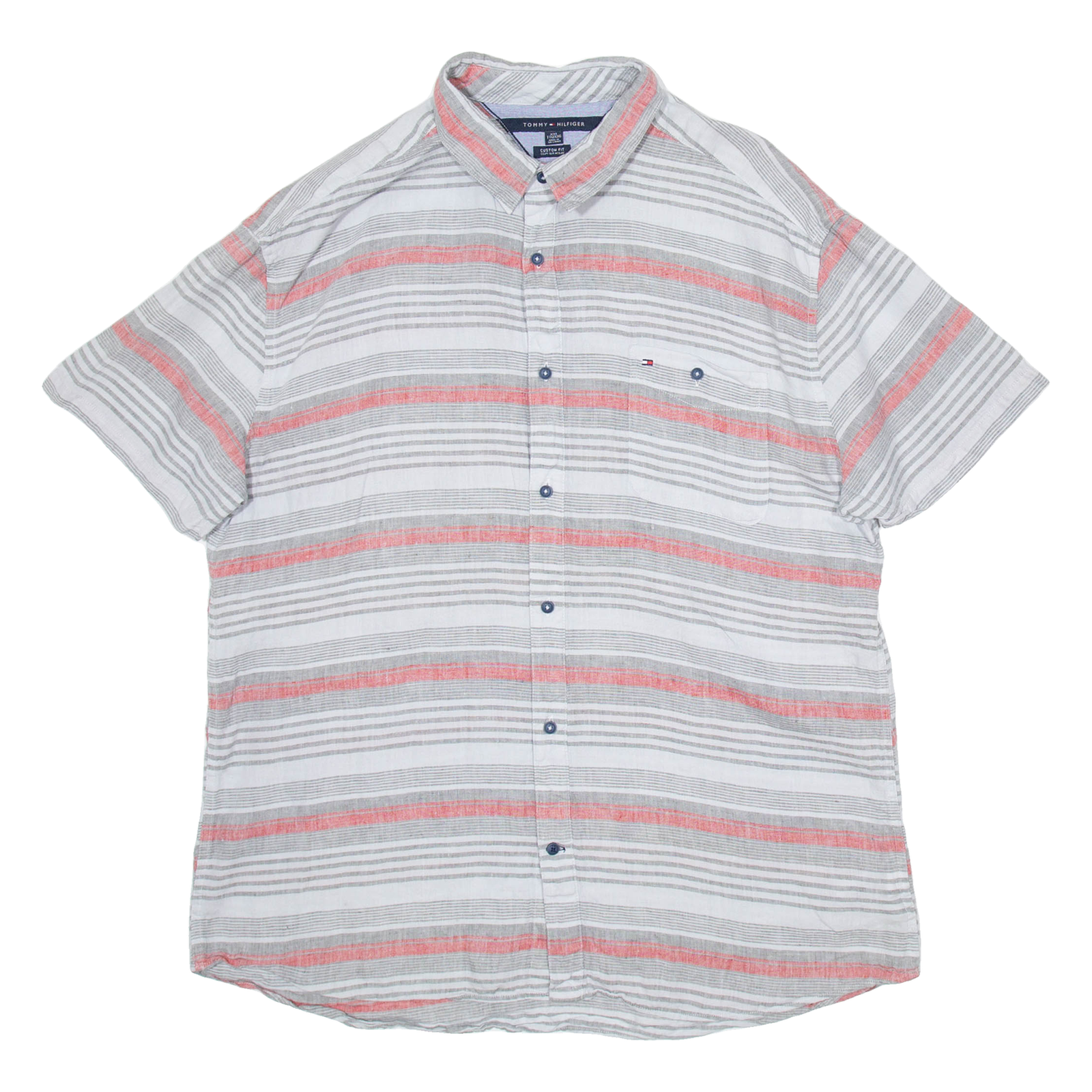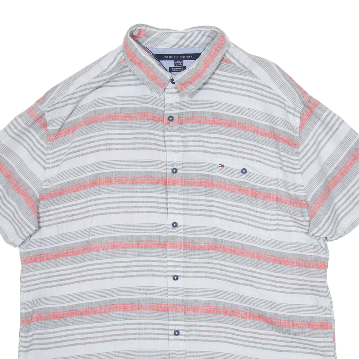TOMMY HILFIGER Mens Shirt Grey Striped 2XL