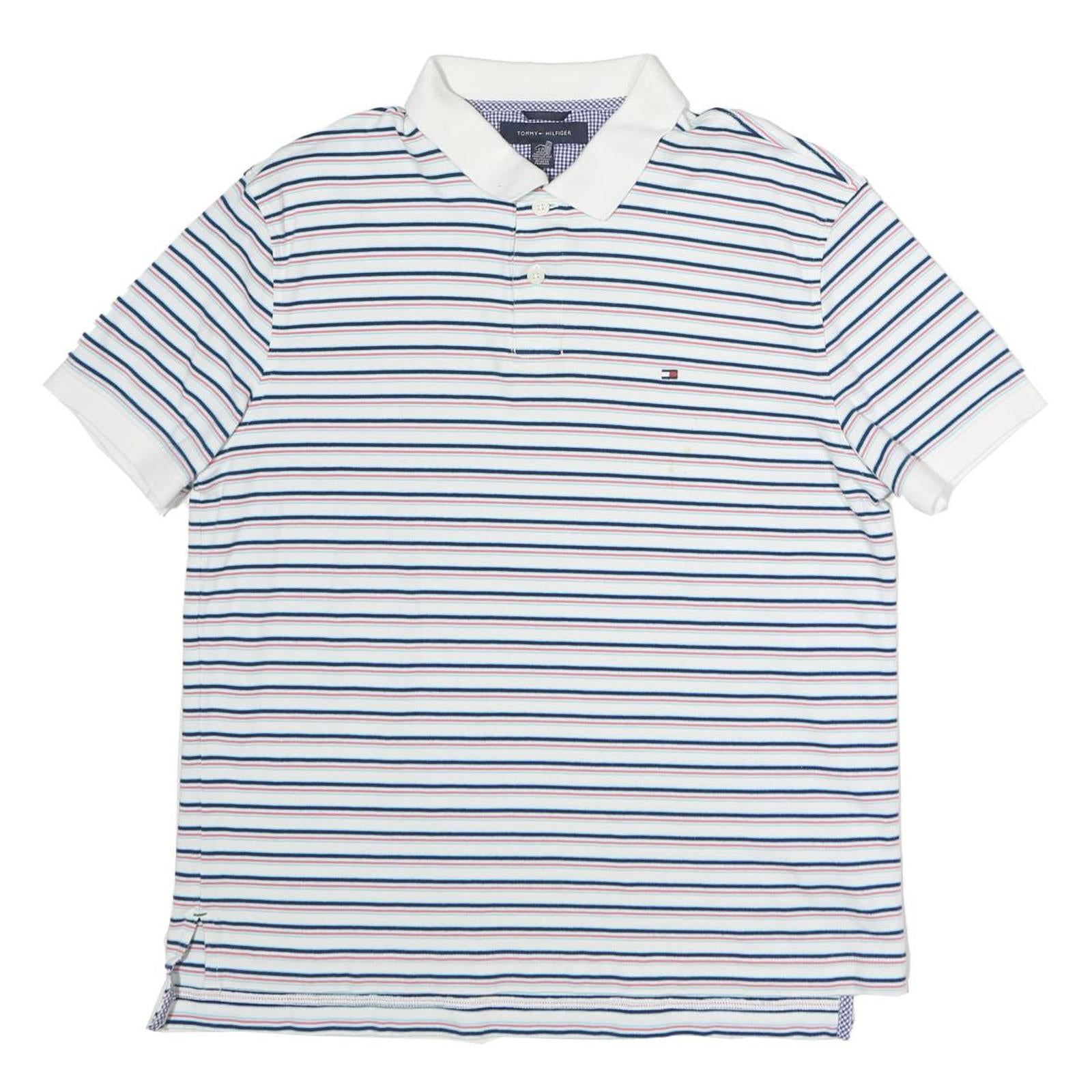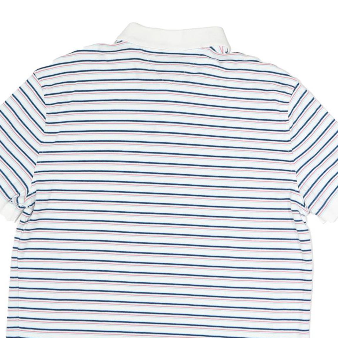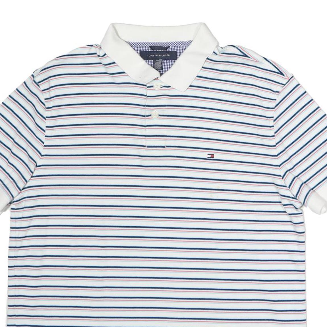 TOMMY HILFIGER Mens White Blue Red Striped Polo Shirt Short Sleeve L Cotton