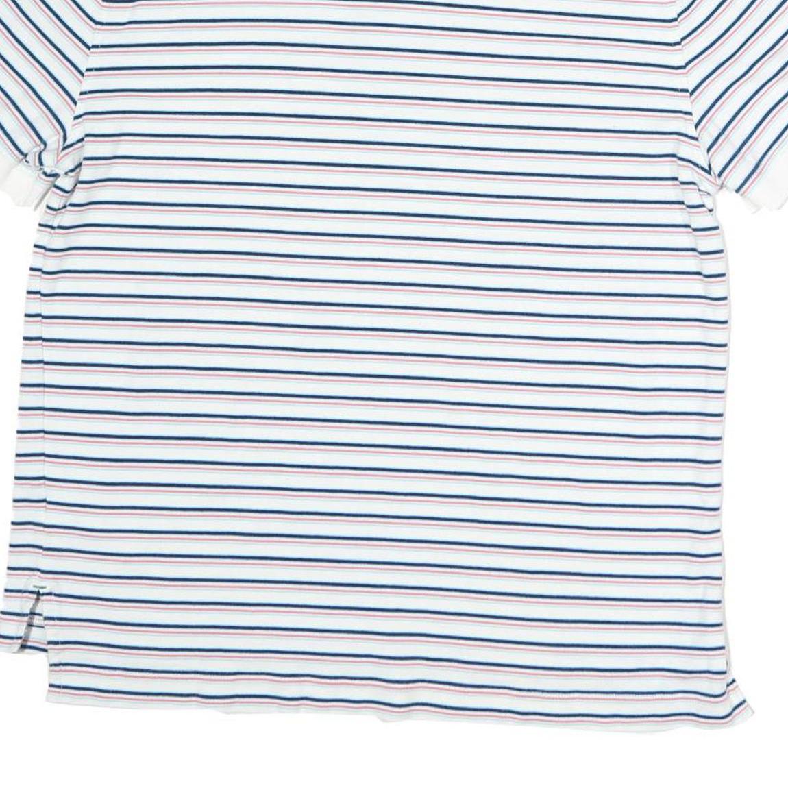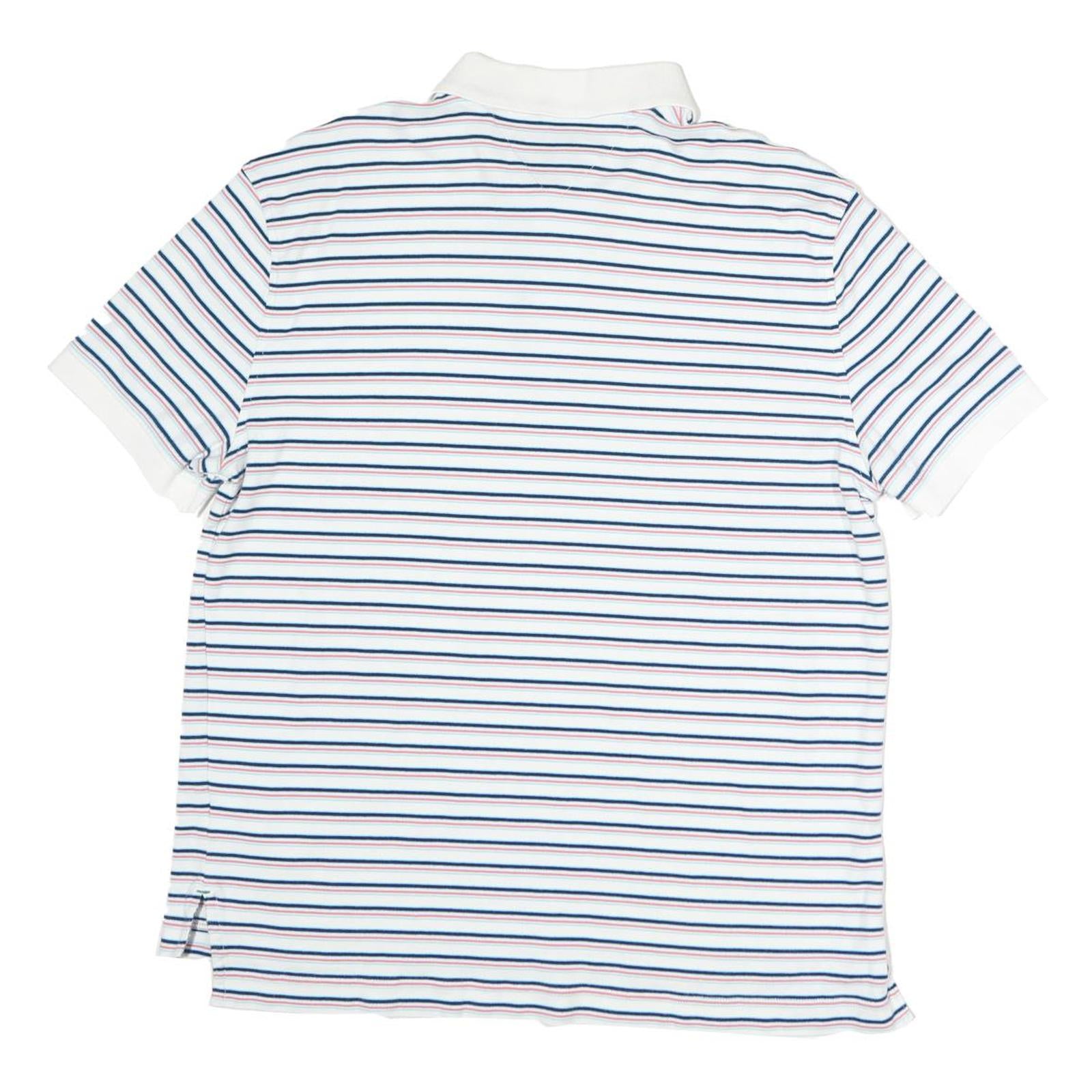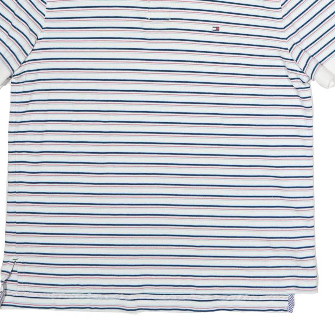 TOMMY HILFIGER Mens White Blue Red Striped Polo Shirt Short Sleeve L Cotton