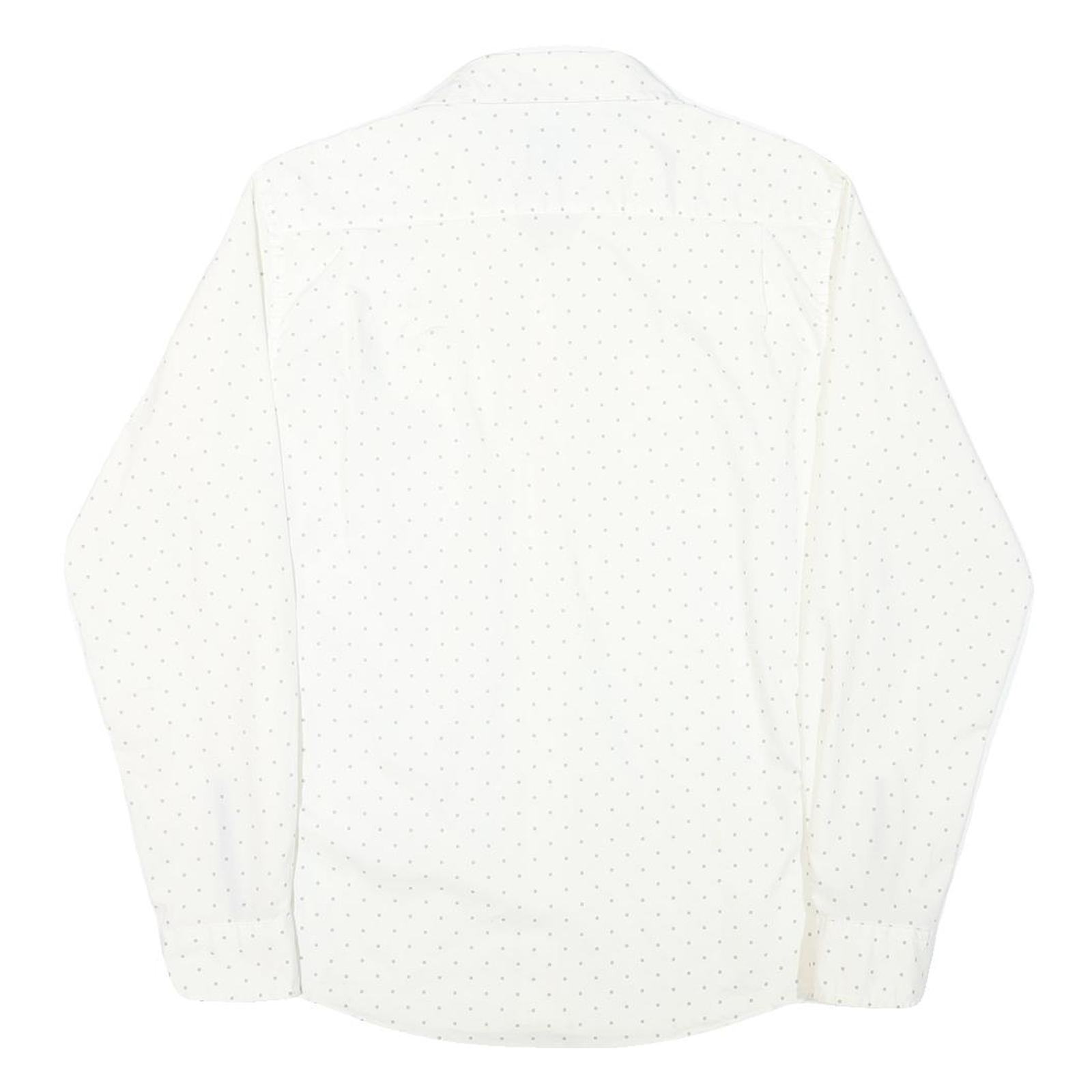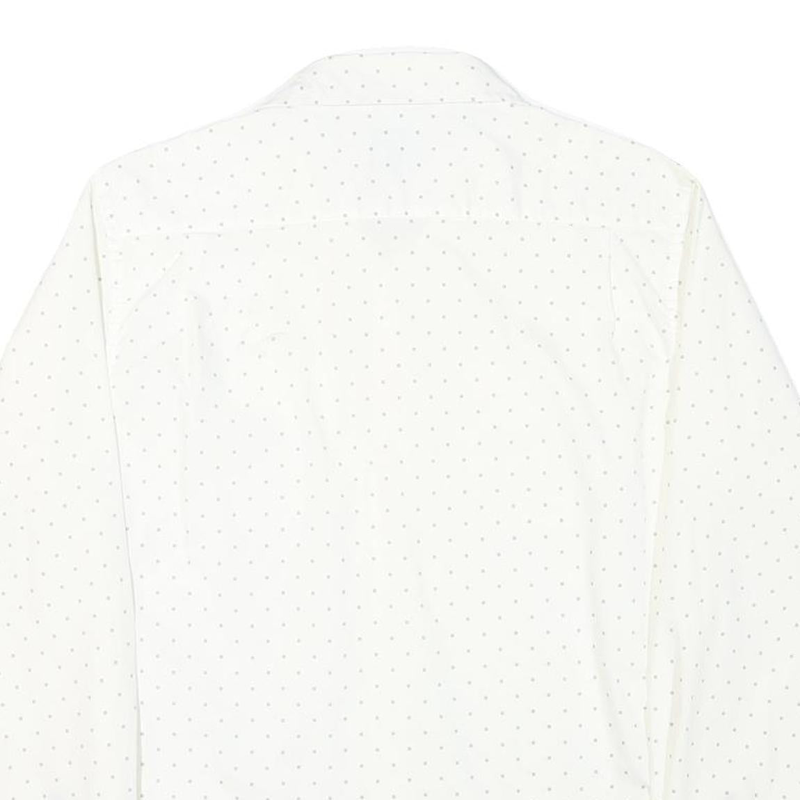 This Mens Tommy Hilfiger shirt features a clean white base with a subtle small dotted pattern spread evenly across the fabric, adding a refined touch to a classic design. The shirt includes a neat button-down front, a relaxed collar, and long sleeves with buttoned cuffs, offering versatile styling options.