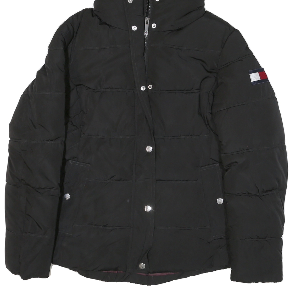 TOMMY HILFIGER Womens Black Jacket S Polyester Blend Quilted Hooded Zip