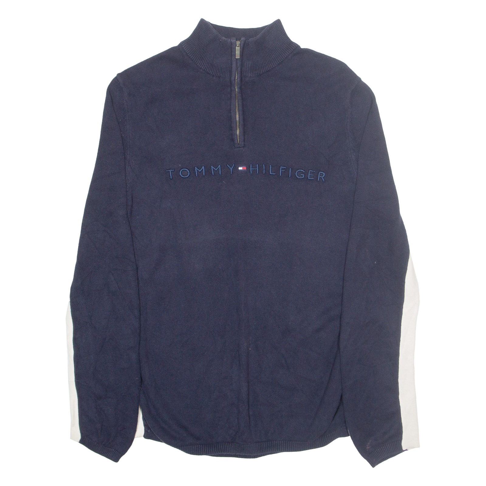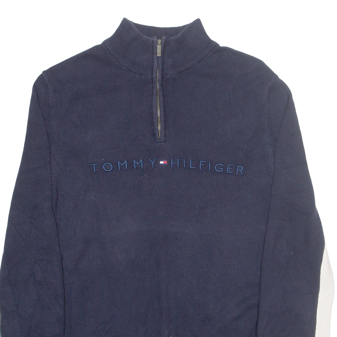 TOMMY HILFIGER Womens Jumper Blue 1/4 Zip Tight Knit M