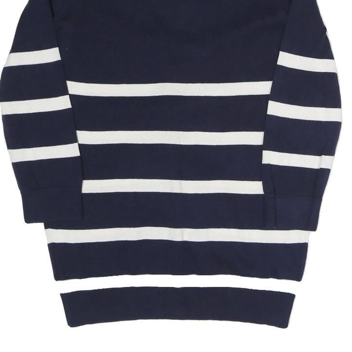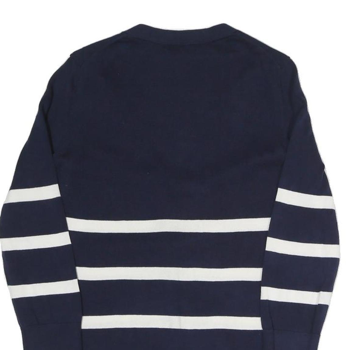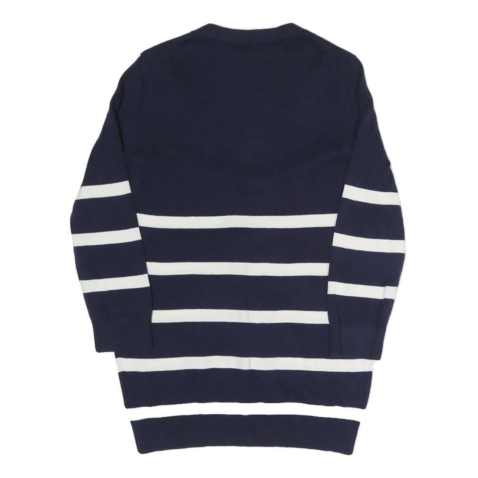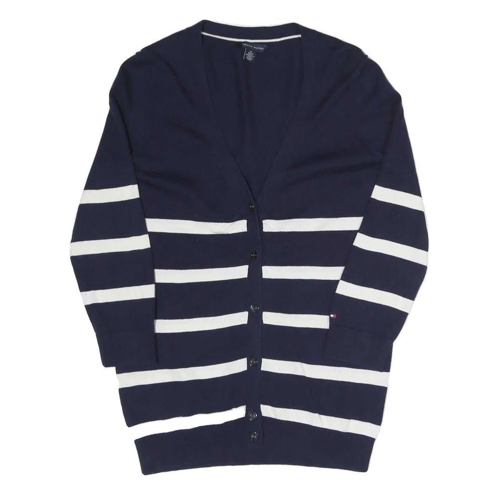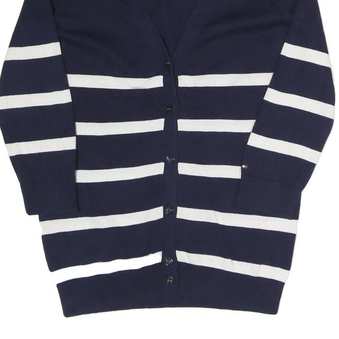 TOMMY HILFIGER Womens Navy Blue & White Striped Patterned Button Up Jumper
