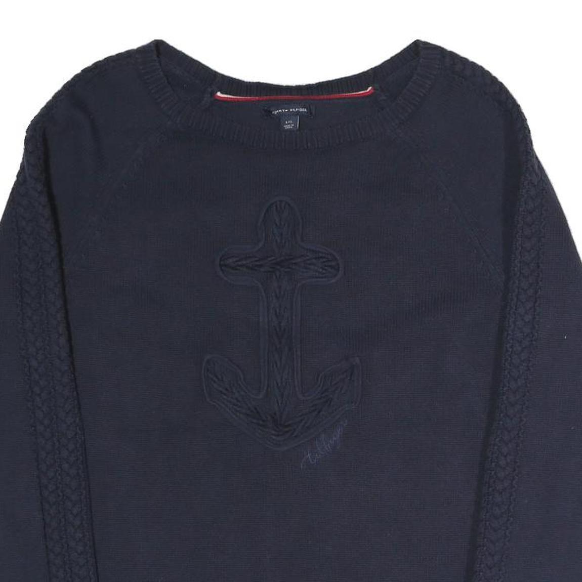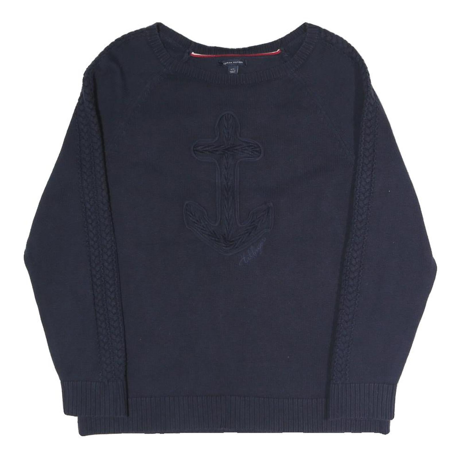 TOMMY HILFIGER Womens Navy Plain Jumper Crew Neck Basic Knit L Cotton Blend