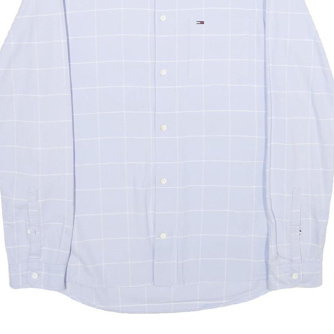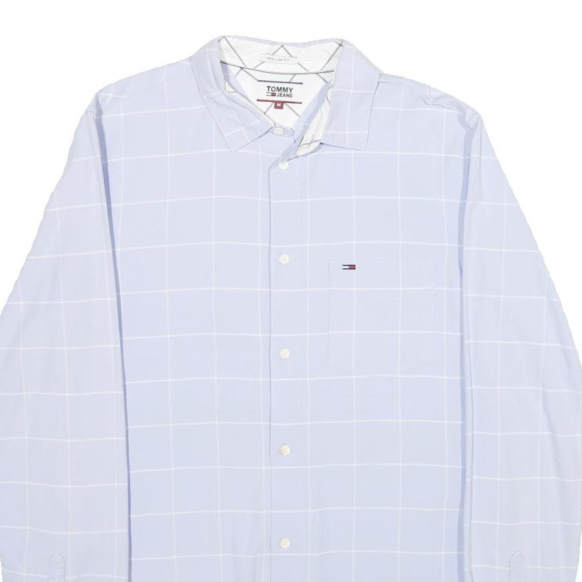 TOMMY JEANS Mens Blue & White Checked Shirt M Cotton Casual Button Down