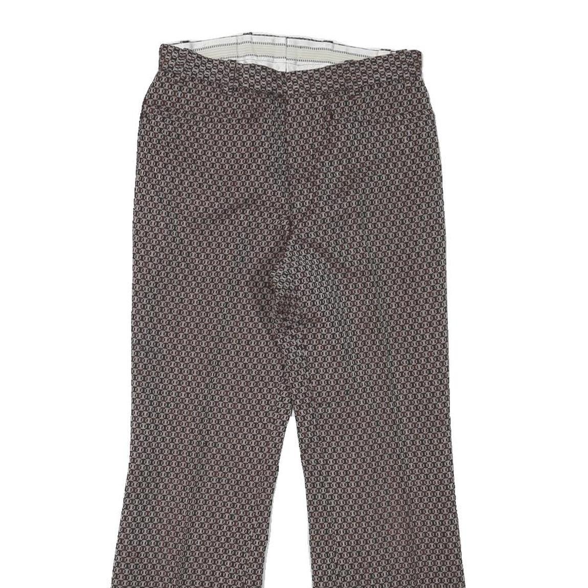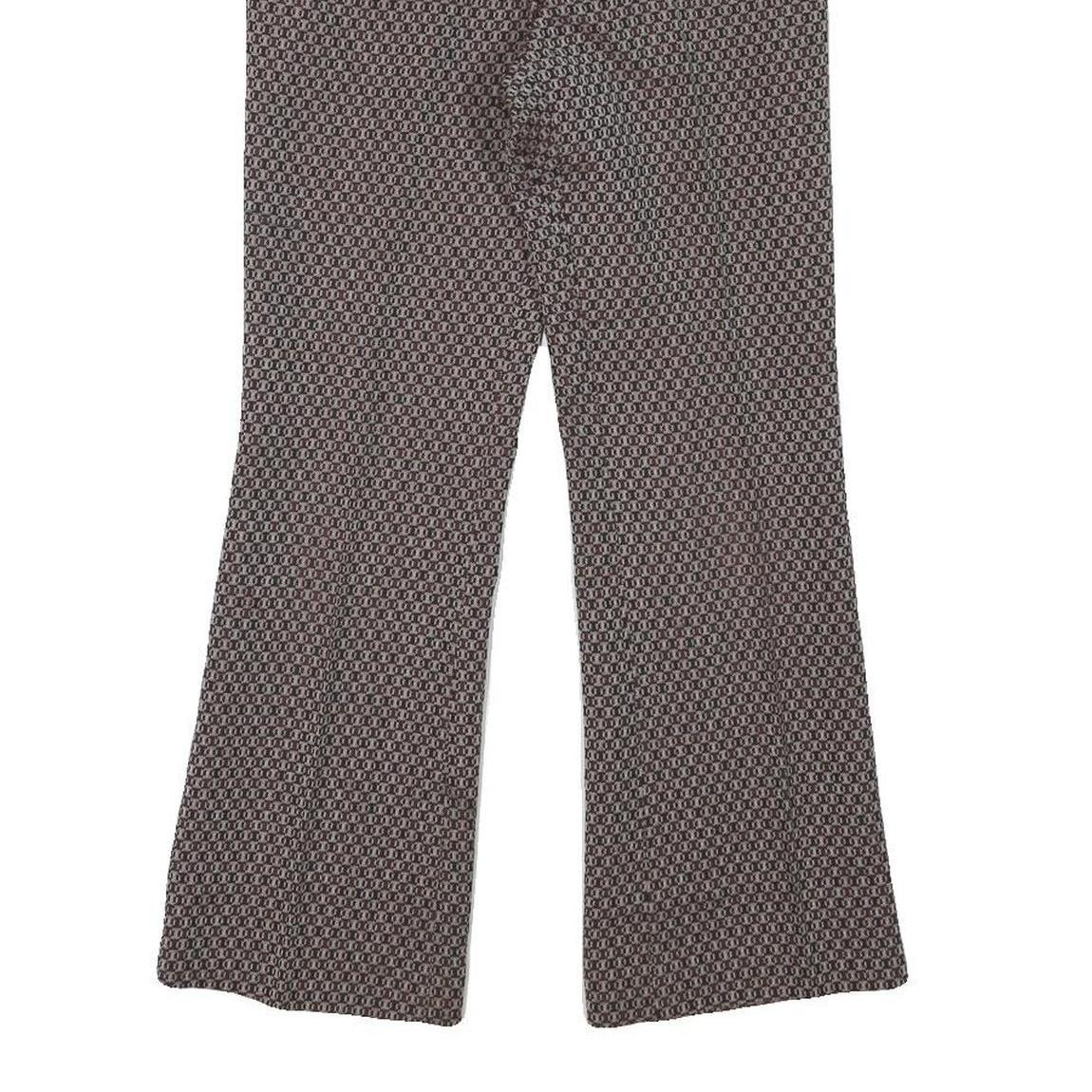 These Trevira womens trousers feature a classic brown base with a subtle woven pattern throughout, creating a sophisticated and versatile look. The fabric's wool blend offers a warm, soft feel while maintaining durability and structure. They have a regular fit with a flattering flared leg that adds a touch of retro-inspired style to your wardrobe.