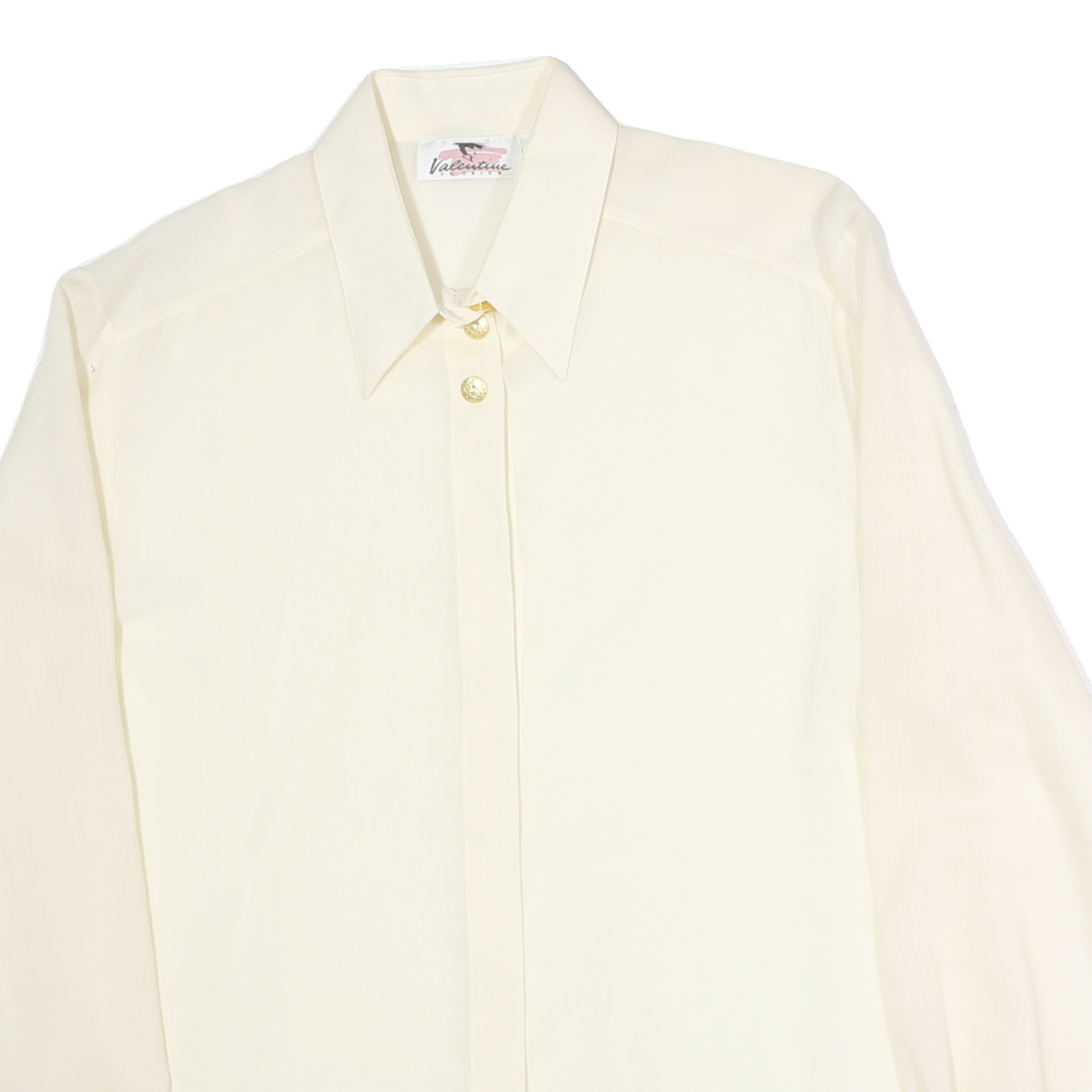 VALENTINE Womens Cream Shirt Long Sleeve Collared Plain M Classic Elegant Top